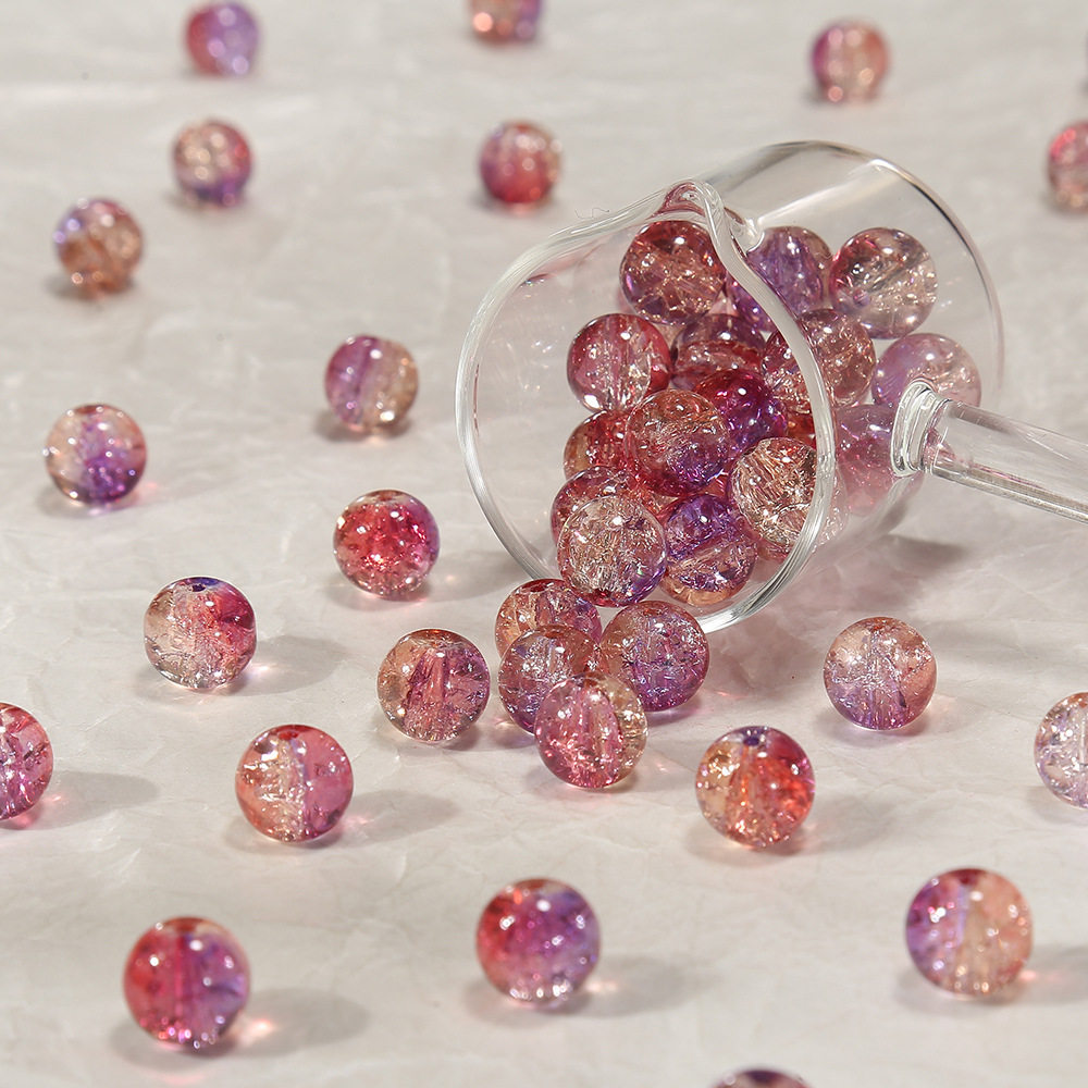 大鱼海棠50颗装珠子散珠diy手链材料冰裂爆花琉璃珠10mm串珠配件