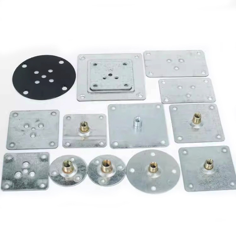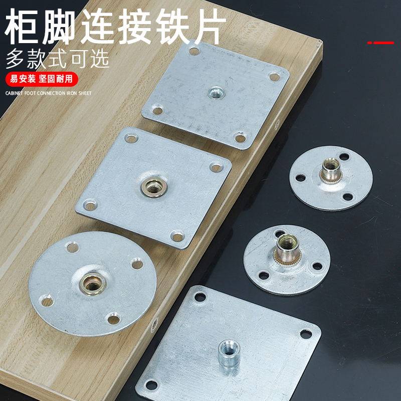 柜脚连接片方形铁片家具连接件沙发腿固定件圆形直片木板维修加固