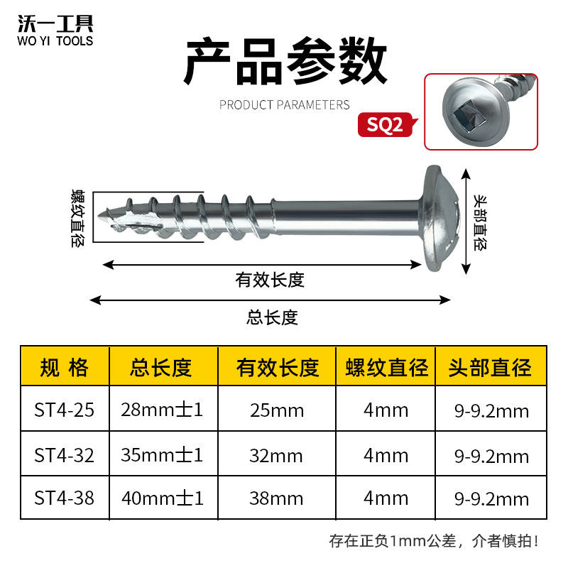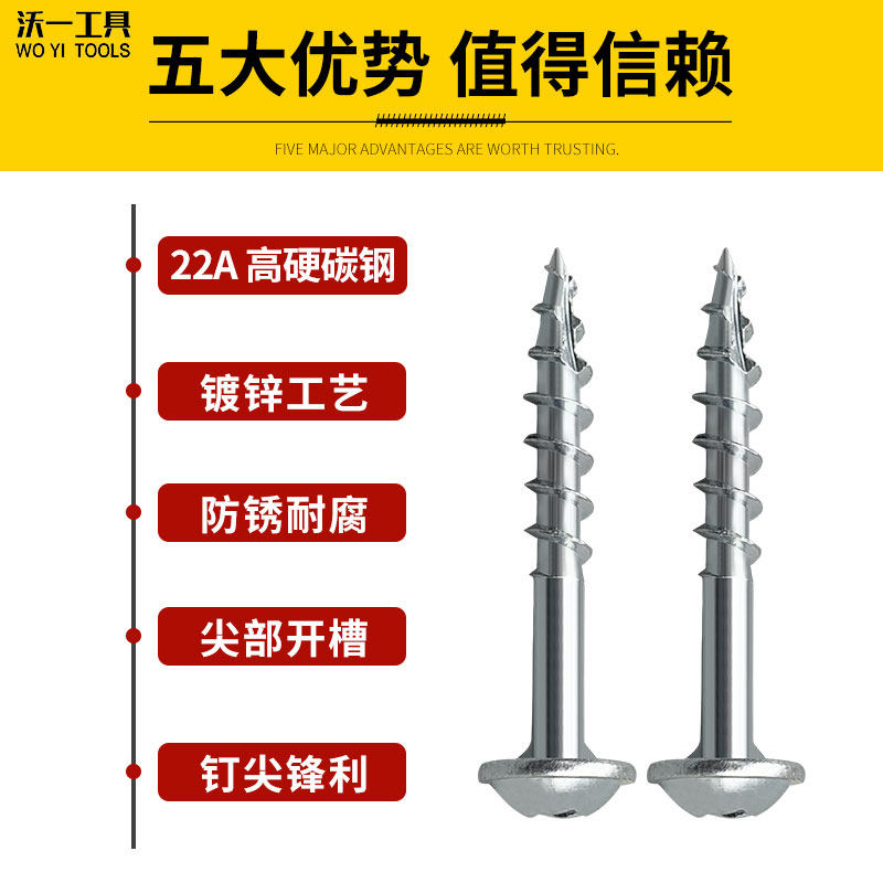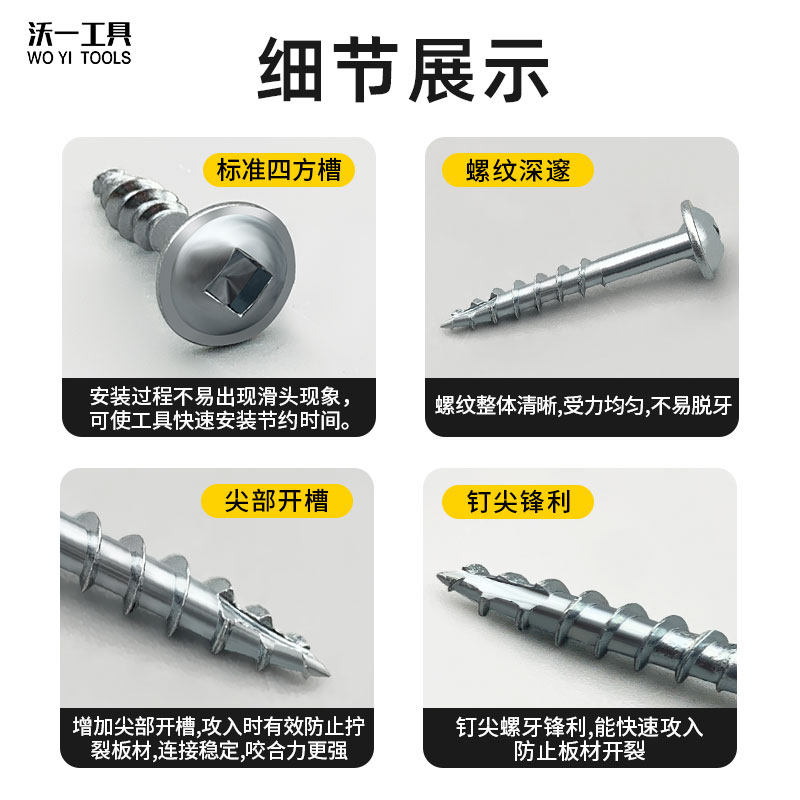 沃一9.5木工斜孔螺丝半牙自攻螺丝斜孔器专用方口螺钉自攻钉配件