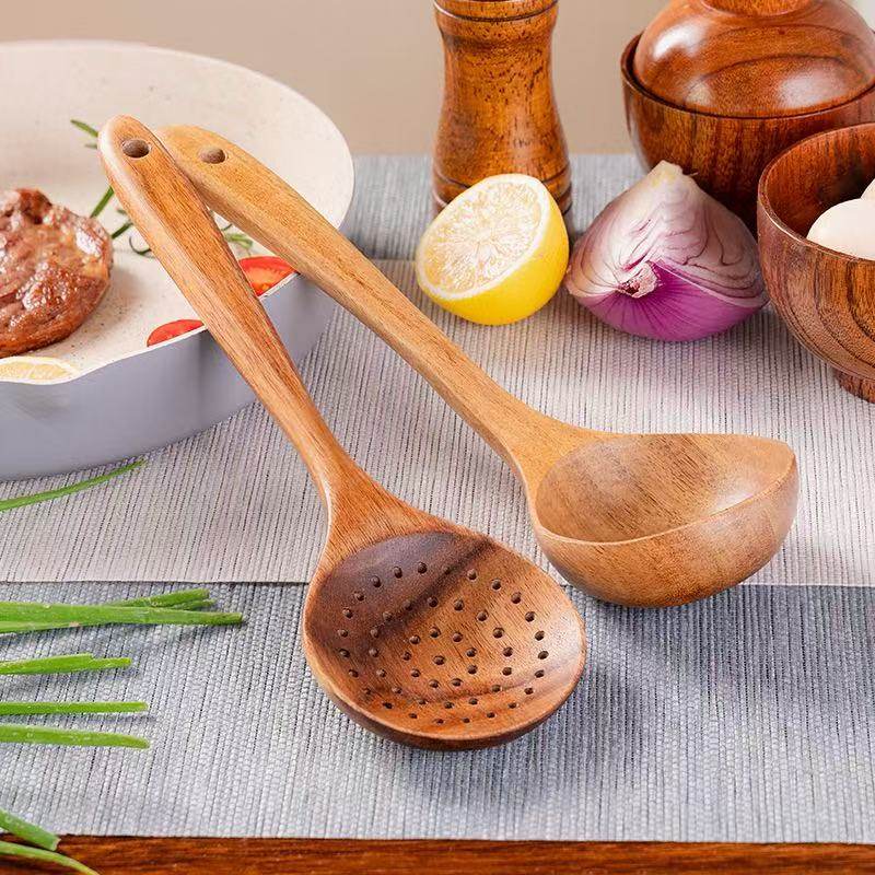 相思木烹饪勺铲套装长柄炒菜锅铲汤勺漏勺木质料理铲厨房用具
