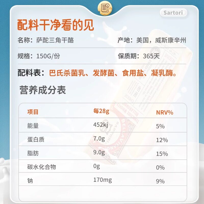 萨酡芭拉维他原制干酪高钙芝士儿童即食零食无添加非再制奶酪150g
