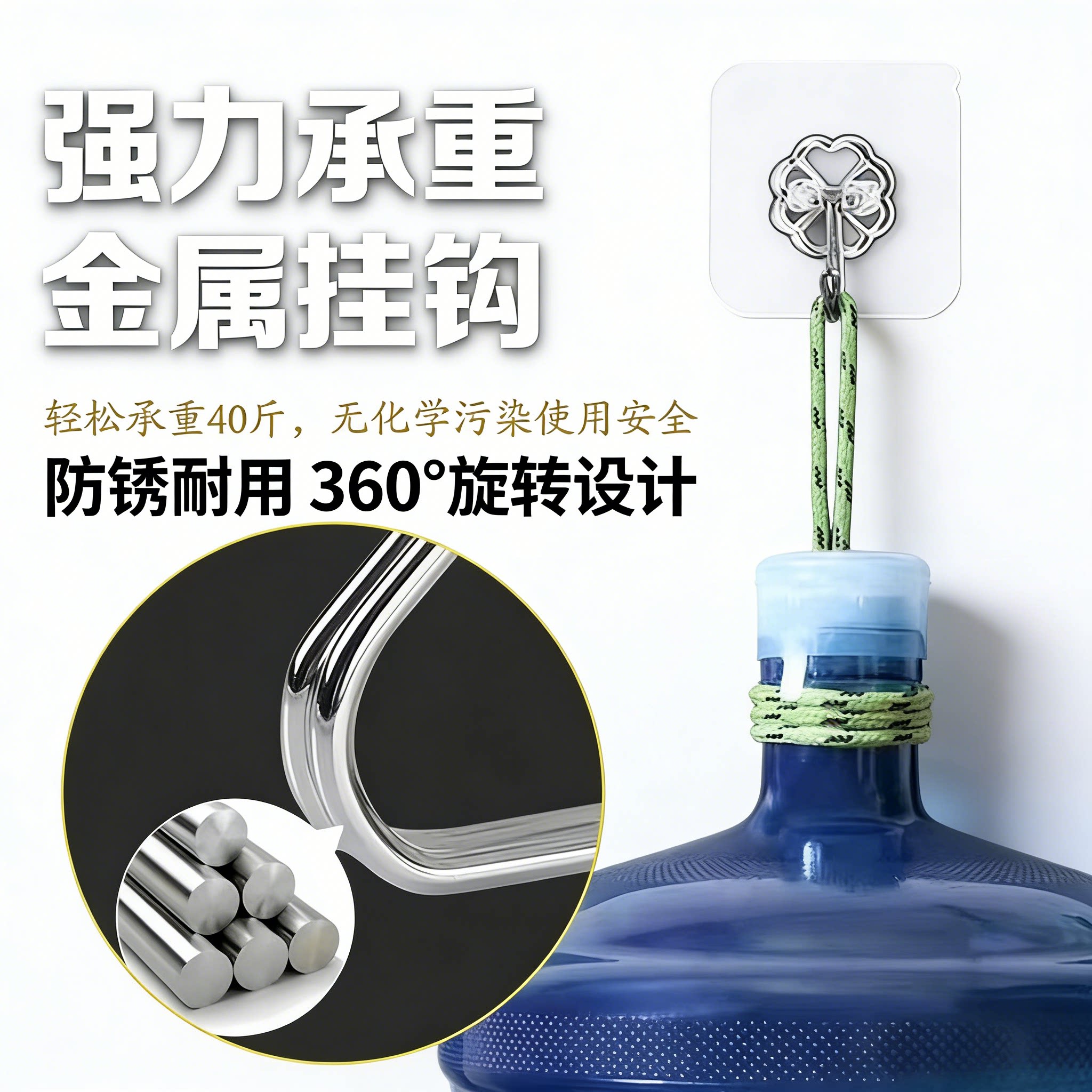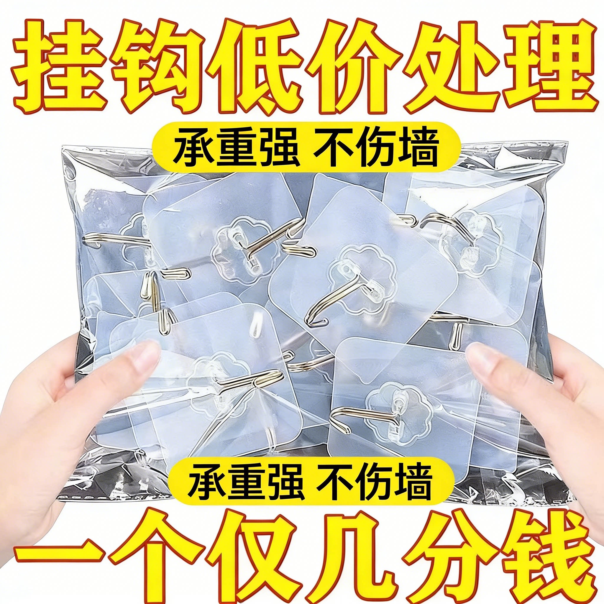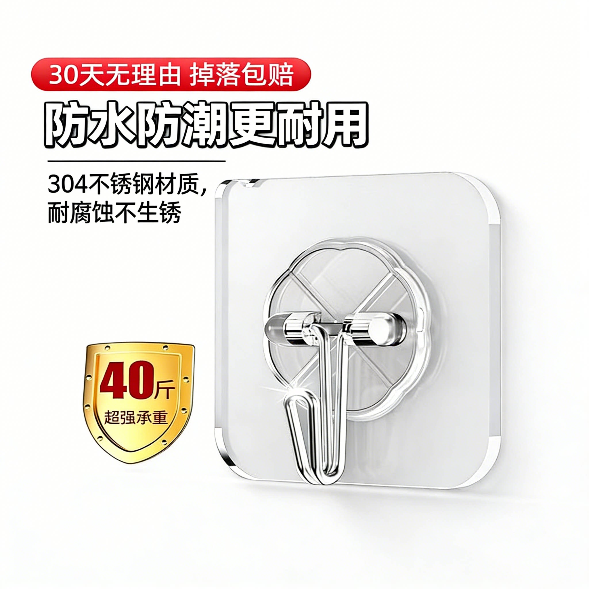 新款粘钩免打孔强力粘钩厨房无痕透明防水挂钩不锈钢材质强力承重
