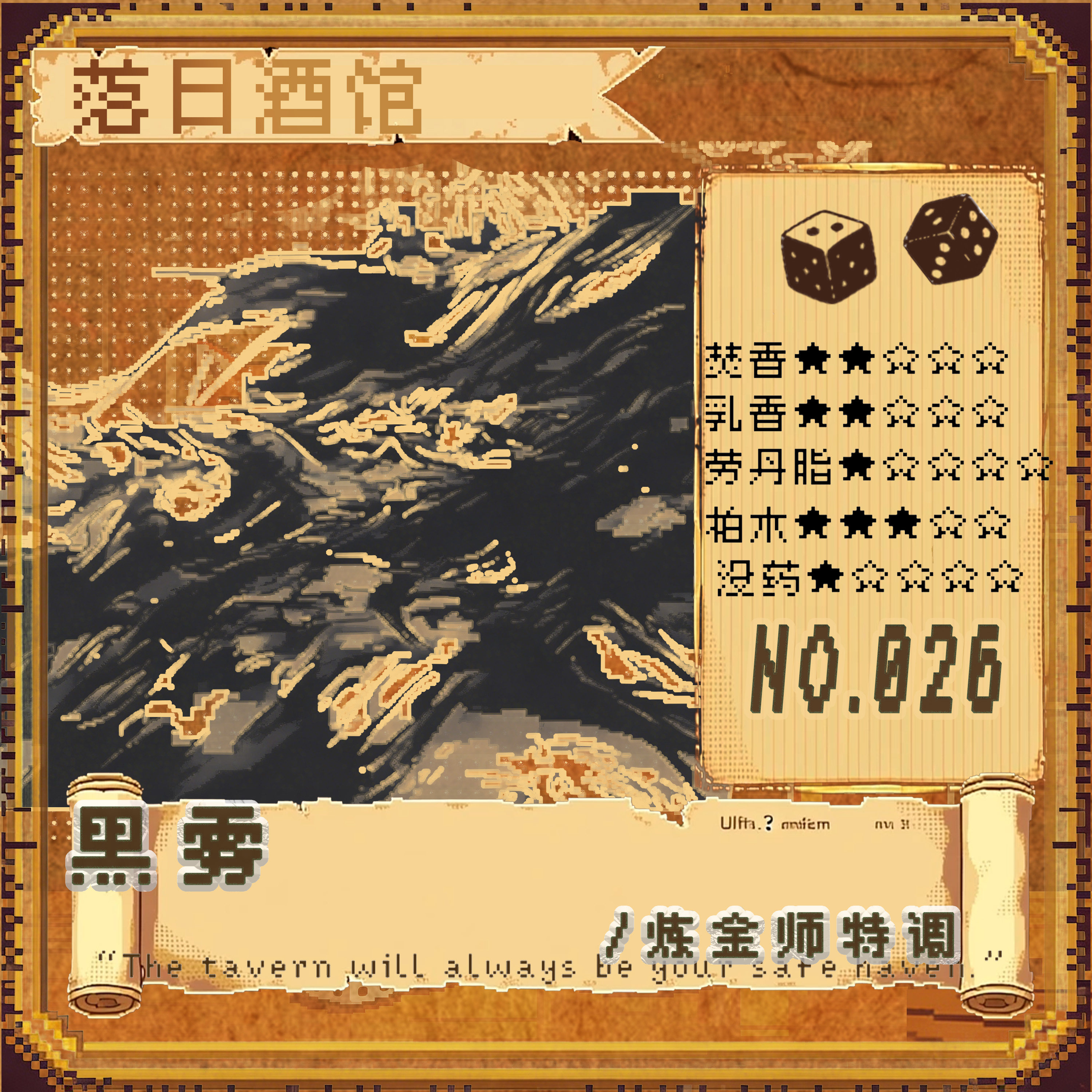 落日酒馆NO.26 炼金师特调 黑雾 焚香乳香乌木金酒 木质 22/5