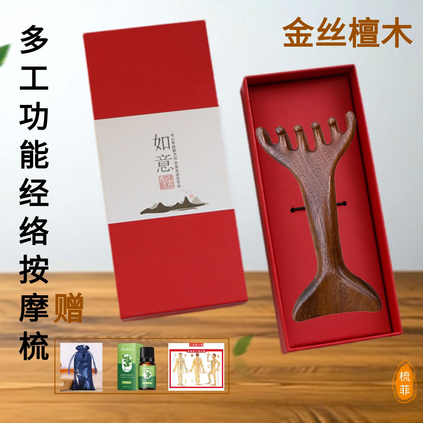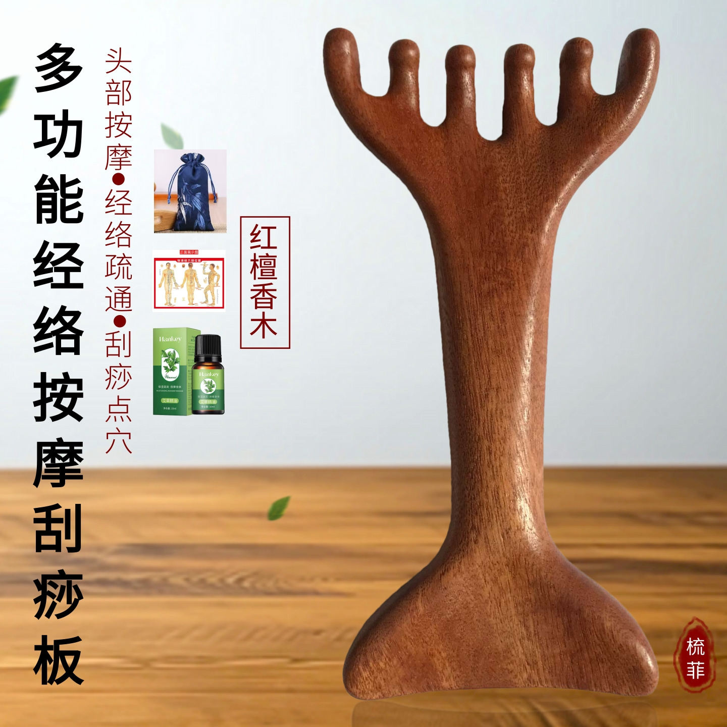 檀木刮痧板多功能经络按摩梳头部按摩刮腿肚出痧快脚足点穴刮疗片