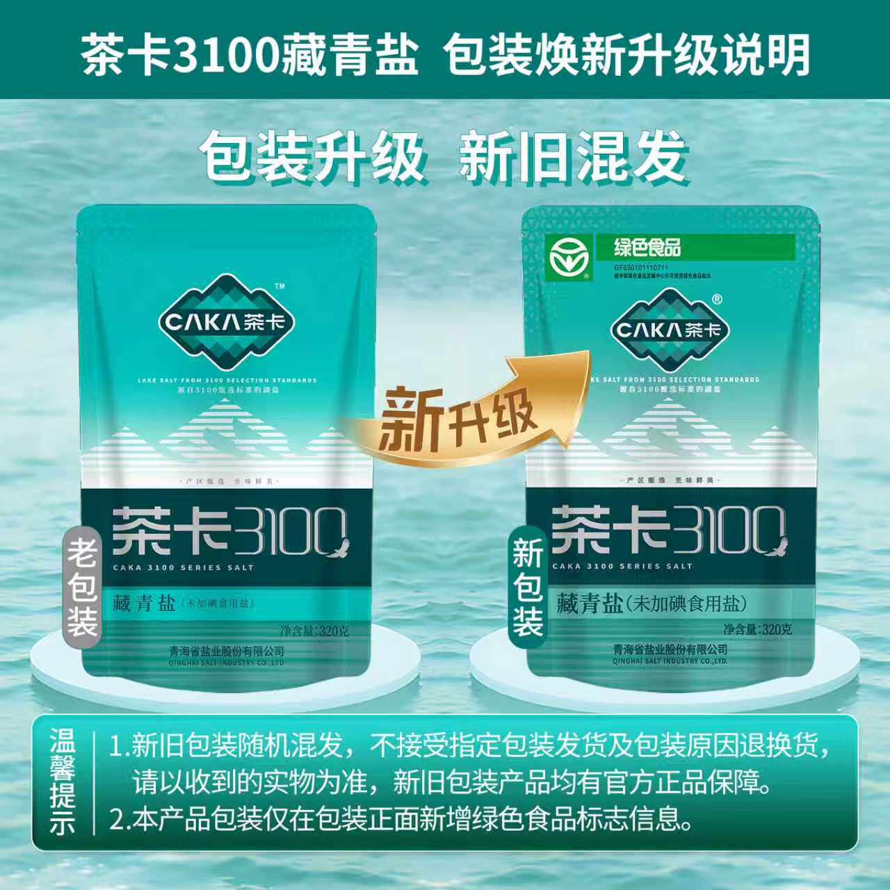 【店铺热卖】茶卡3100藏青盐4袋无碘盐家用款食用盐健康湖盐