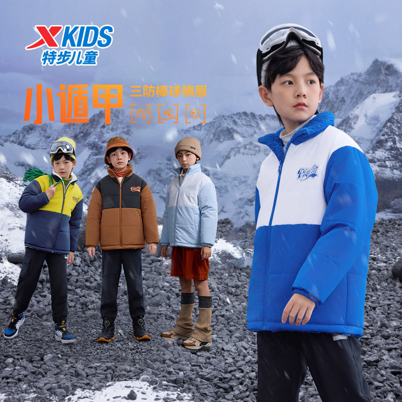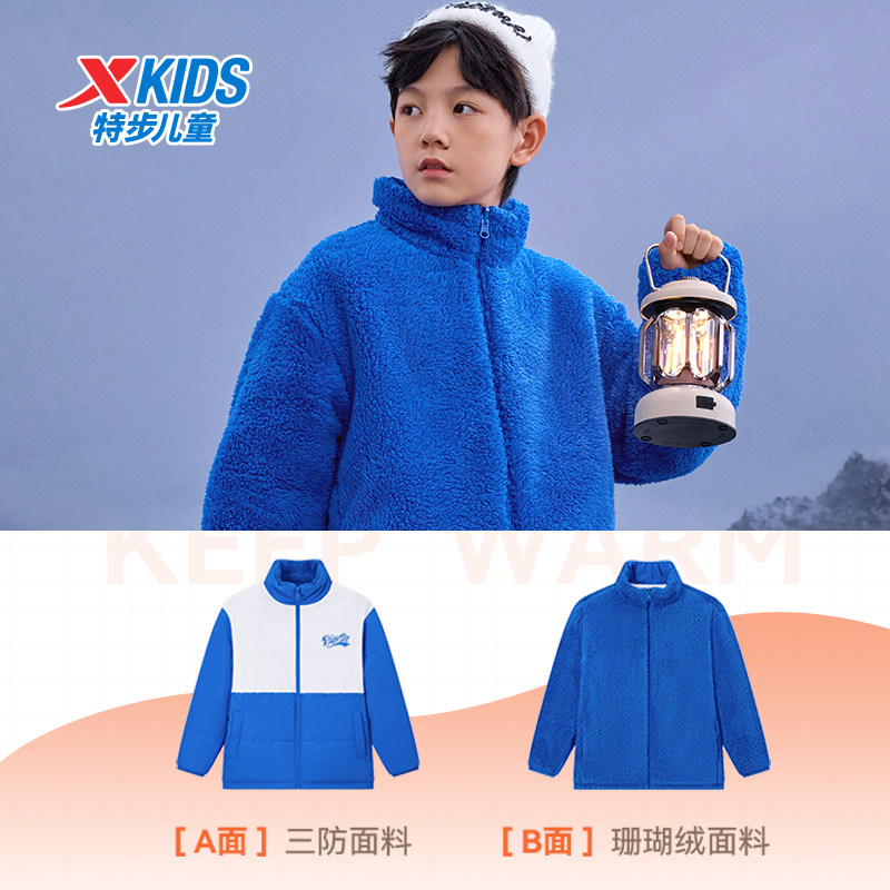 特步童装男童秋冬季款两面穿立领外套儿童保暖棉服中大童三防衣服