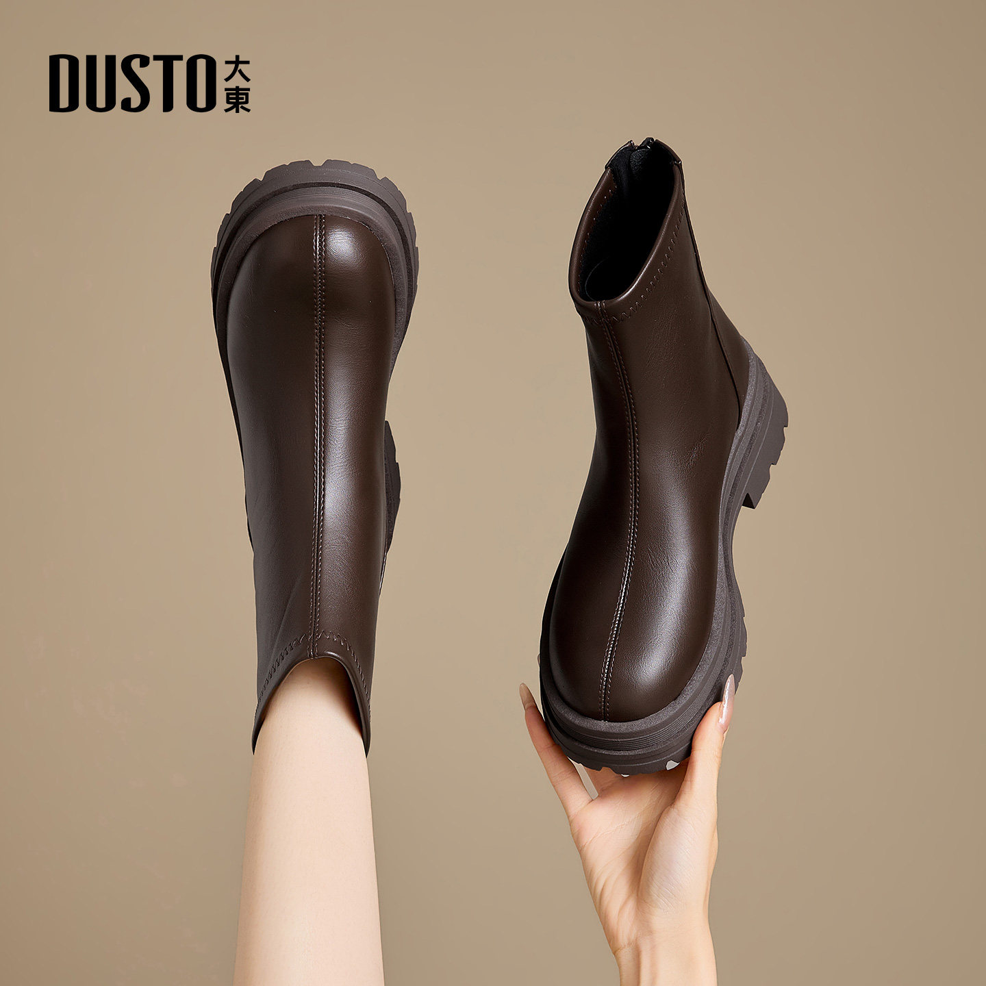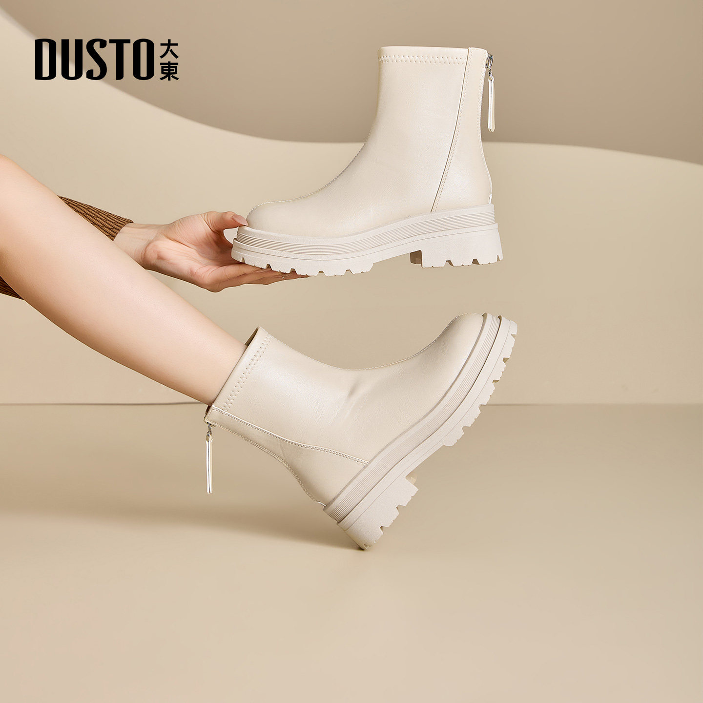 大东时装靴女鞋2025新款冬季瘦瘦靴厚底切尔西靴黑色后拉链短筒靴