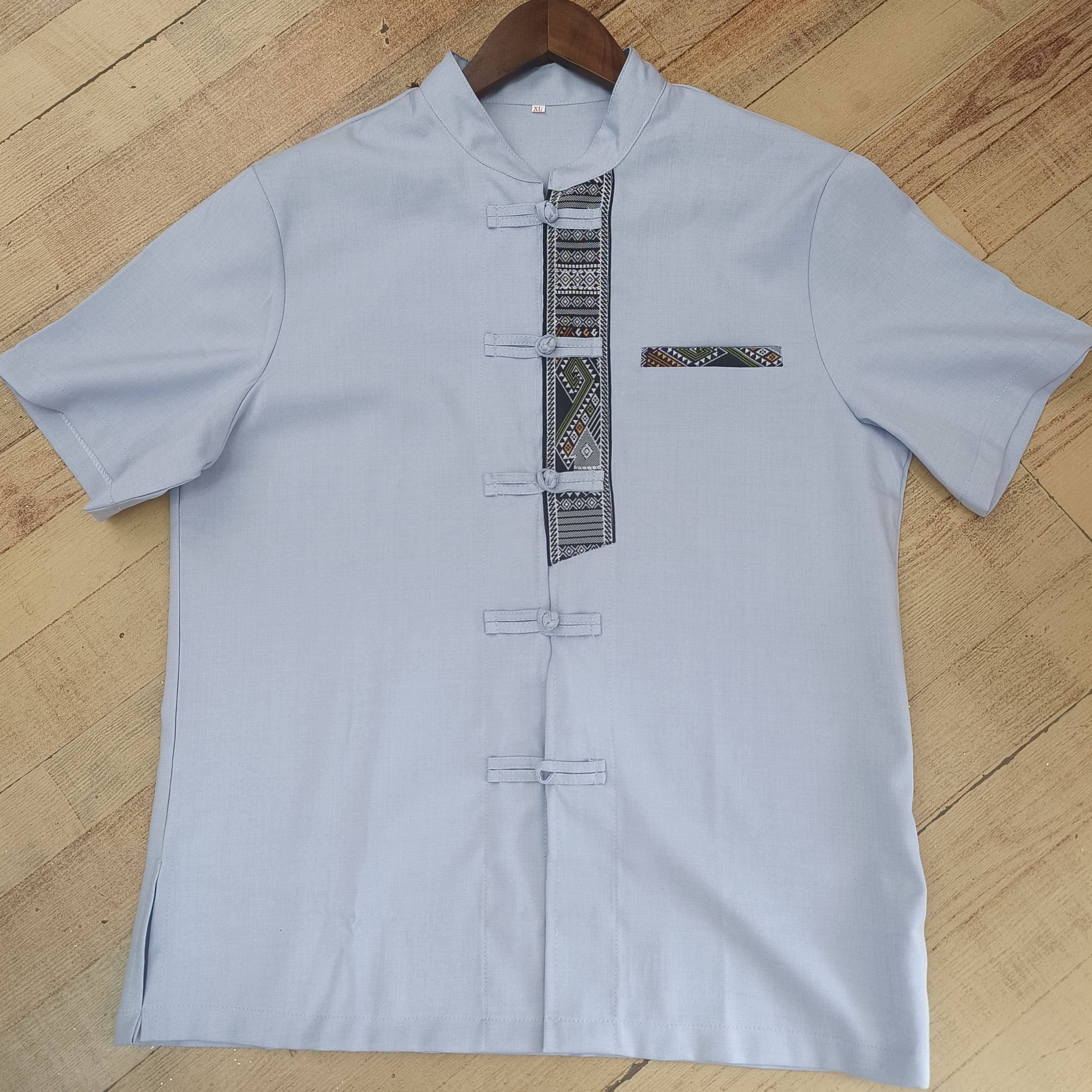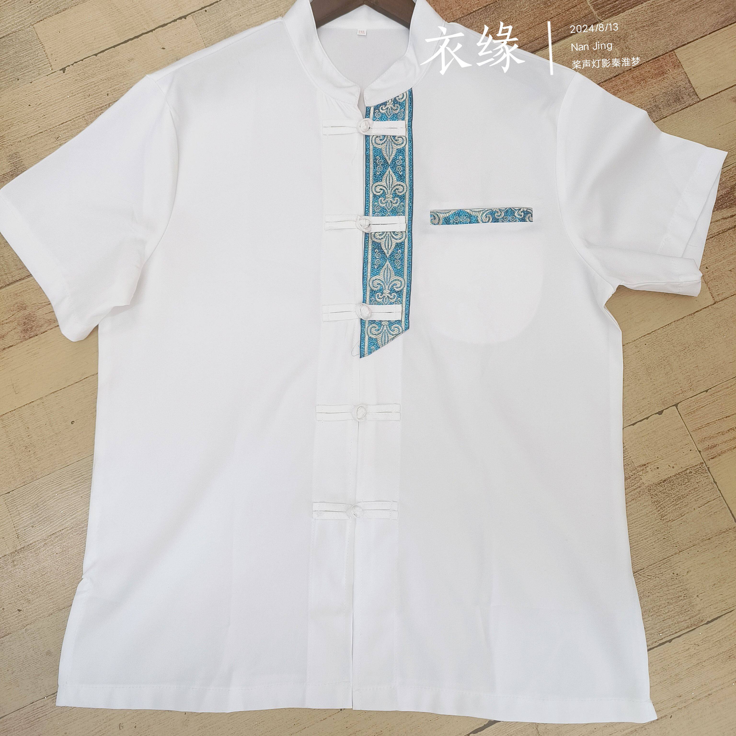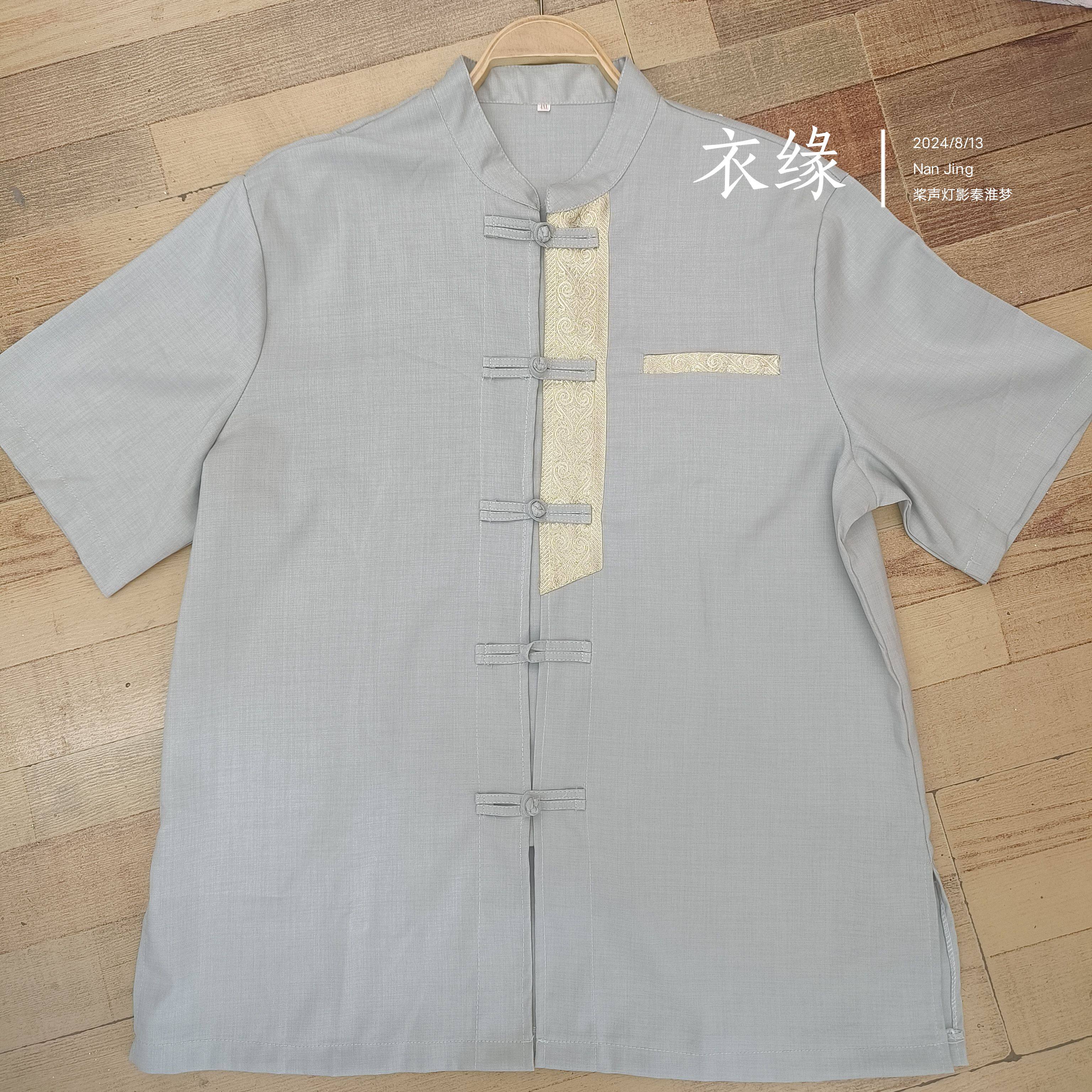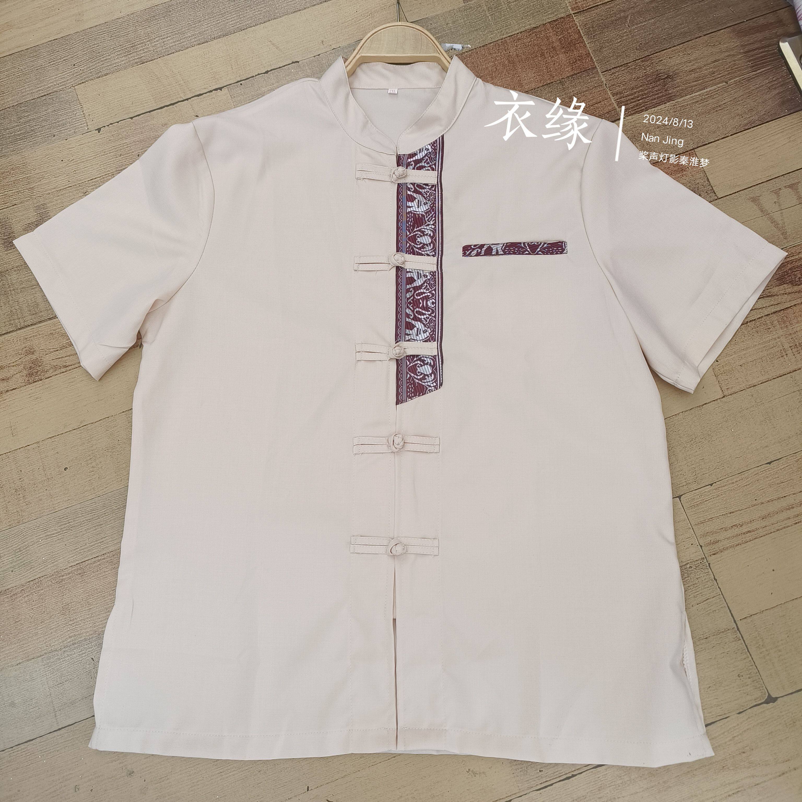西双版纳民族服装男装傣族男衬立领短袖拼接男士傣装衬衣工作服