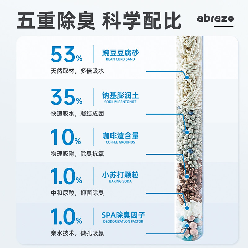 Abrazo宝斐猫砂除臭无尘混合咖啡渣豆腐膨润土可冲厕所2.5kg20斤