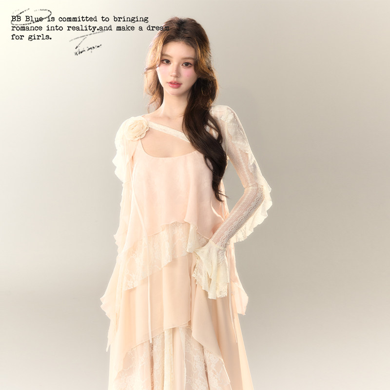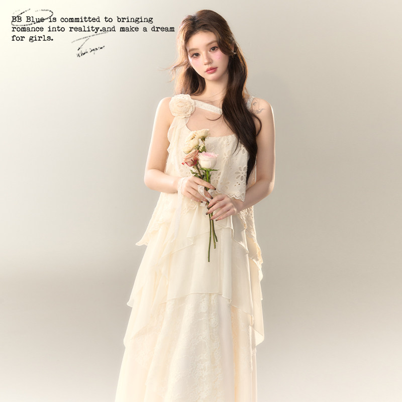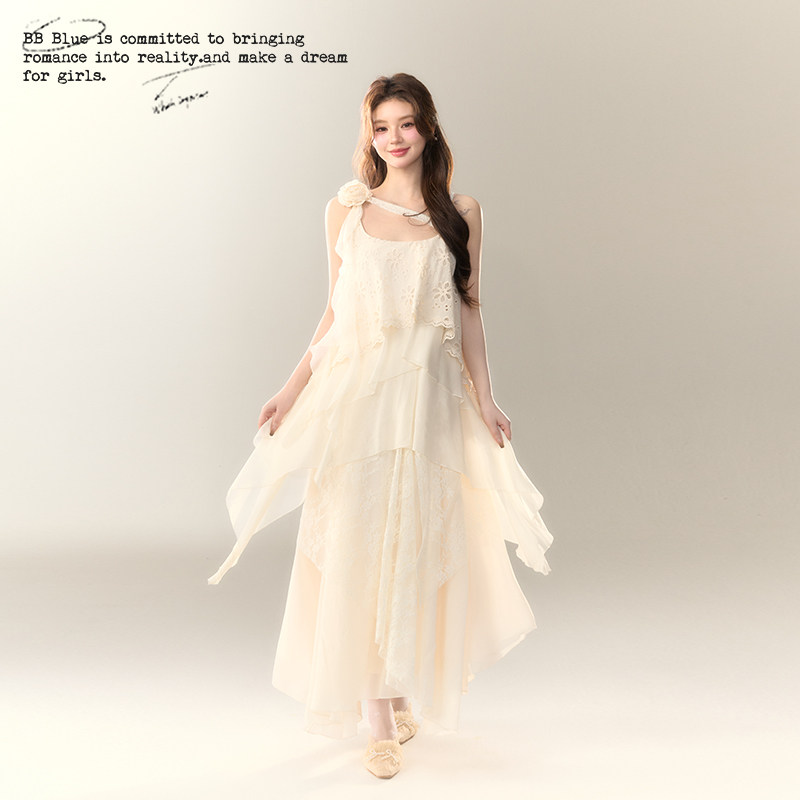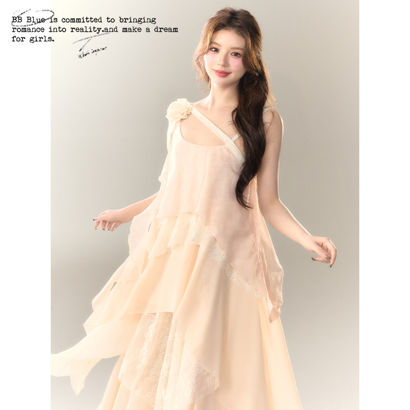 BB BLUE/洛神花裙/浅春系海边度假连衣裙重工多层不规则吊带长裙