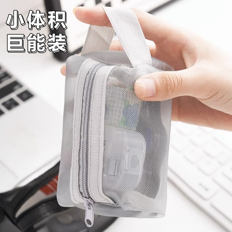 透明网纱收纳袋大容量多功能手提卡包化妆品便携收纳零钱包钥匙包