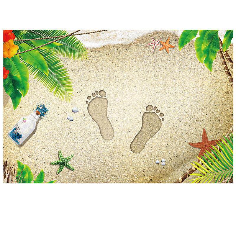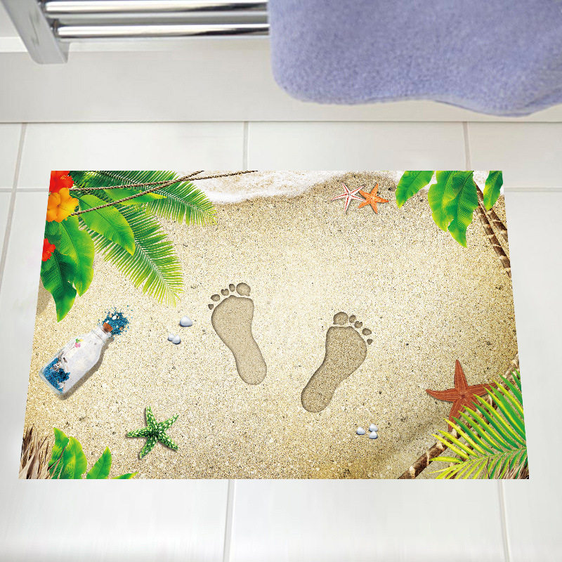 沙滩脚印3d立体地板贴画卫生间厕所创意改造地面防水防滑自粘贴纸