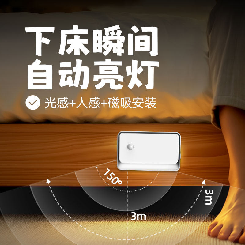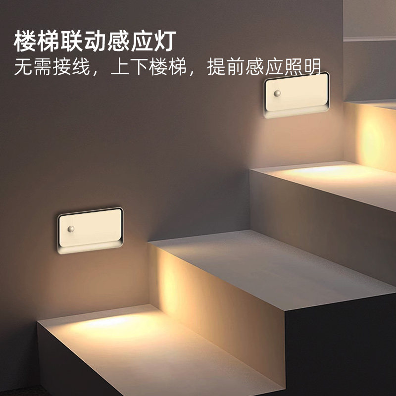 智能联动人体感应灯楼梯过道地脚灯磁吸免布线壁灯起夜充电小夜灯