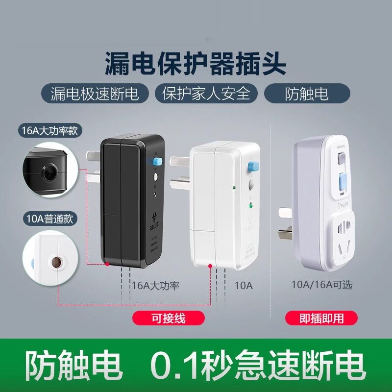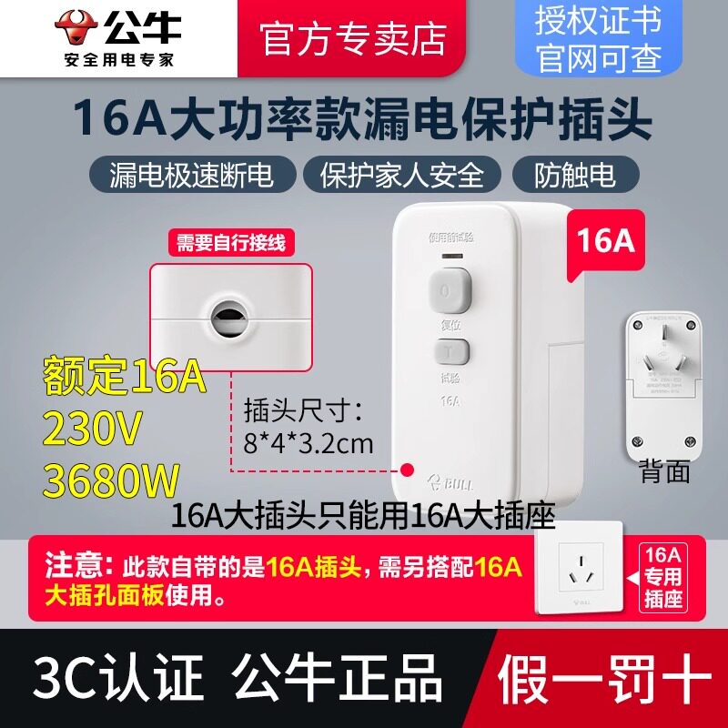 公牛防漏电保护器插头16a电热水器专用漏保带开关家用10a漏电插座