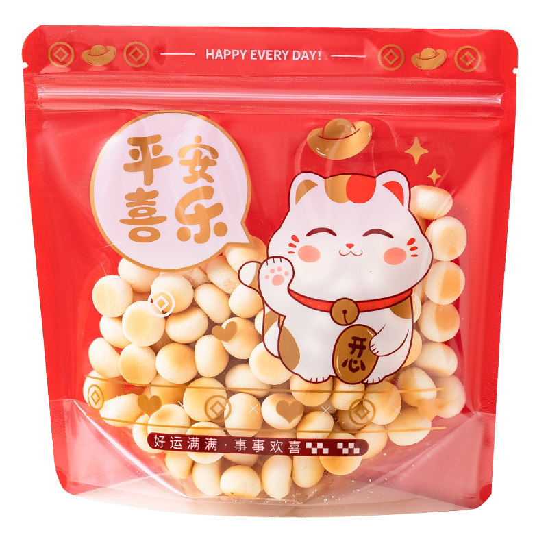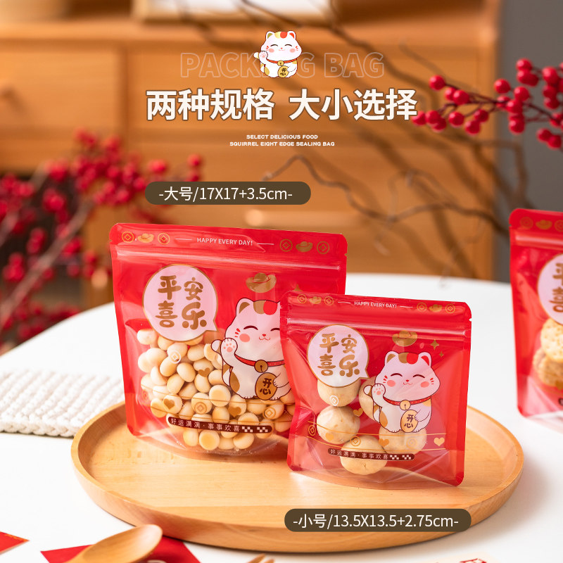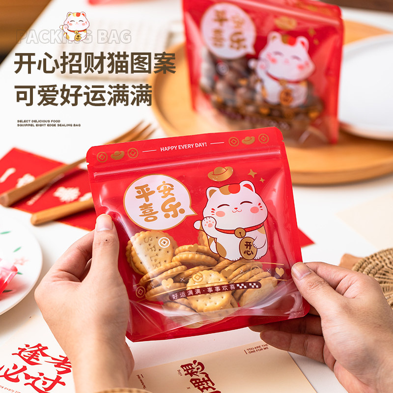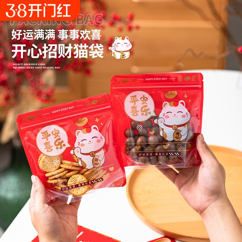 招财猫雪花酥拉链包装袋牛扎饼牛轧糖饼干糖果礼品袋子塑料自封袋