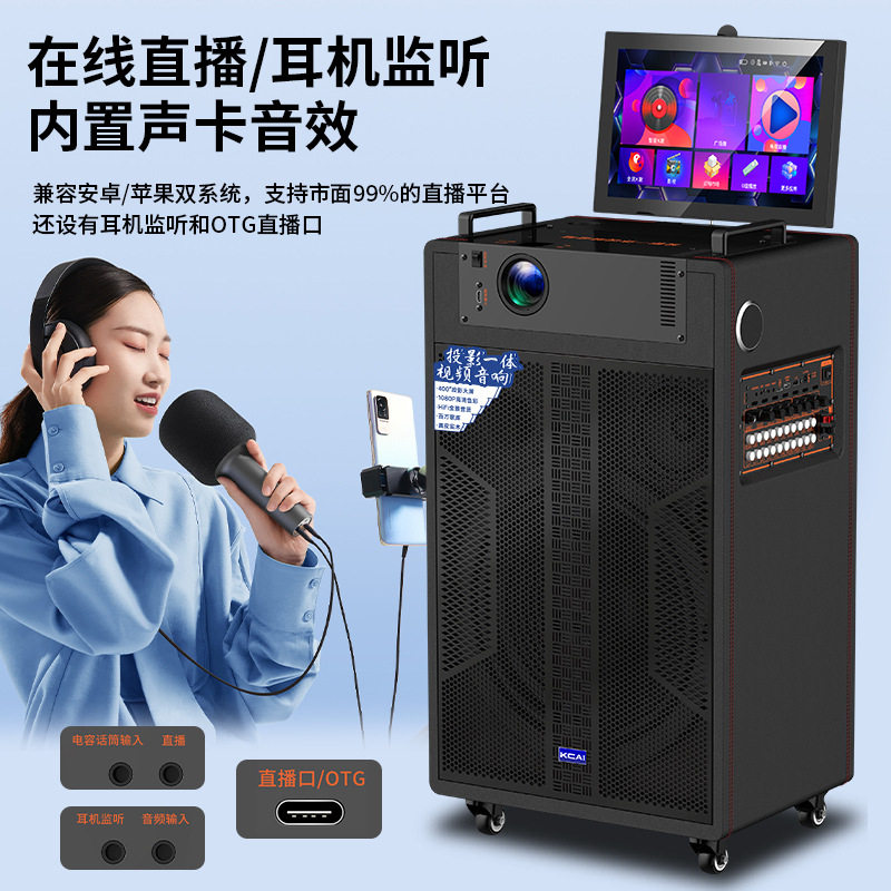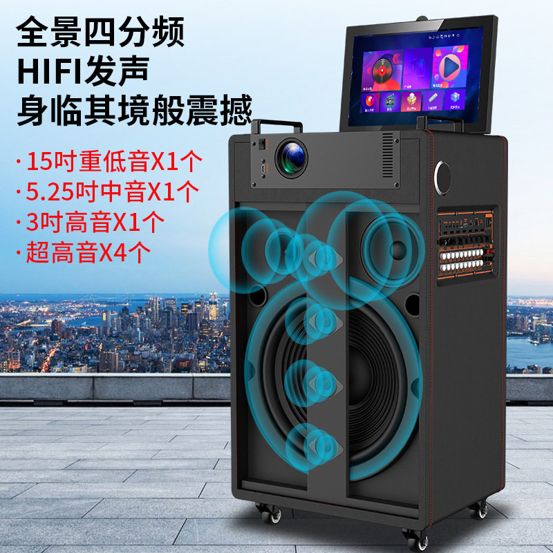 户外家用投影仪大屏音响家庭影院移动卡拉OK点歌直播K歌广场音箱