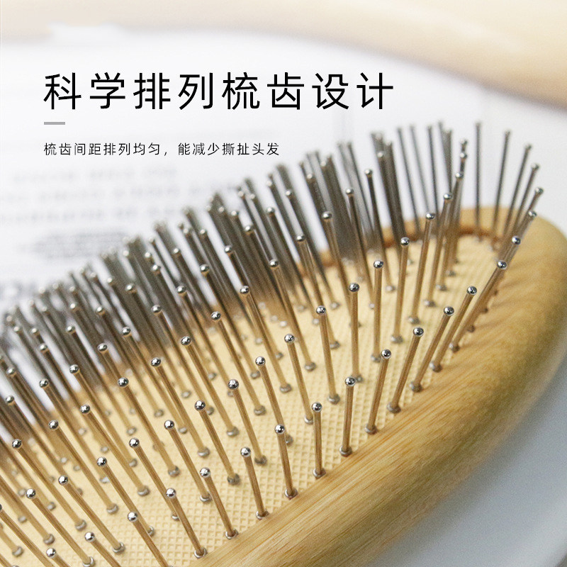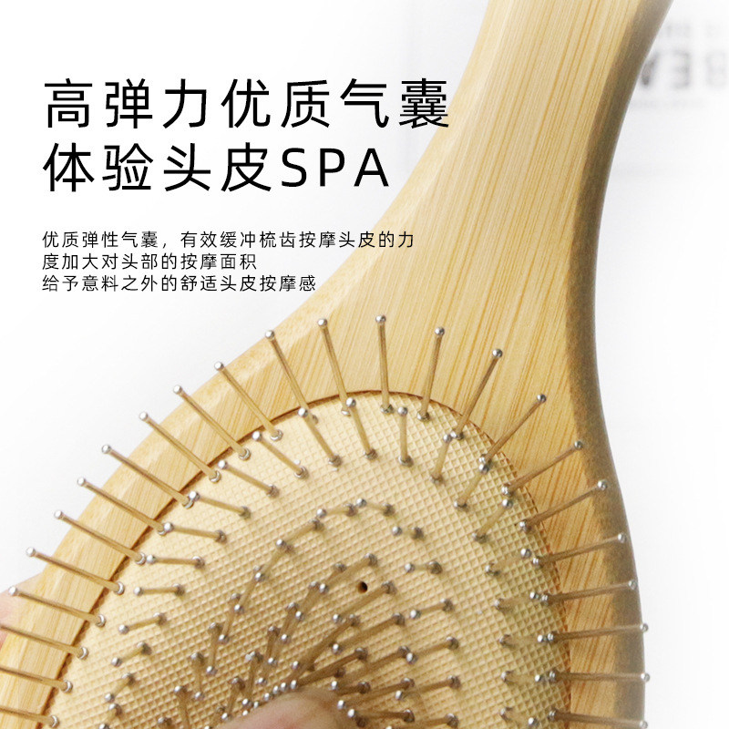 钢针气囊梳头皮按摩钢齿气垫梳便携防静电梳子硬齿楠竹木质按摩梳