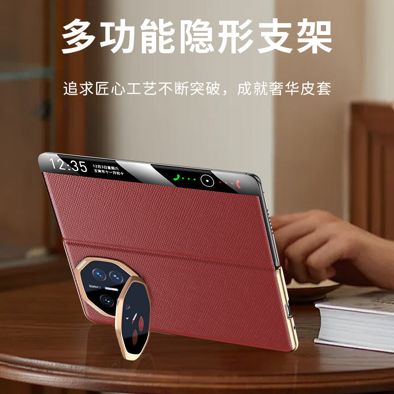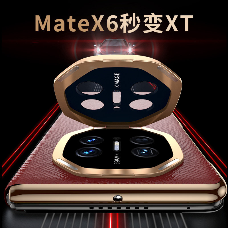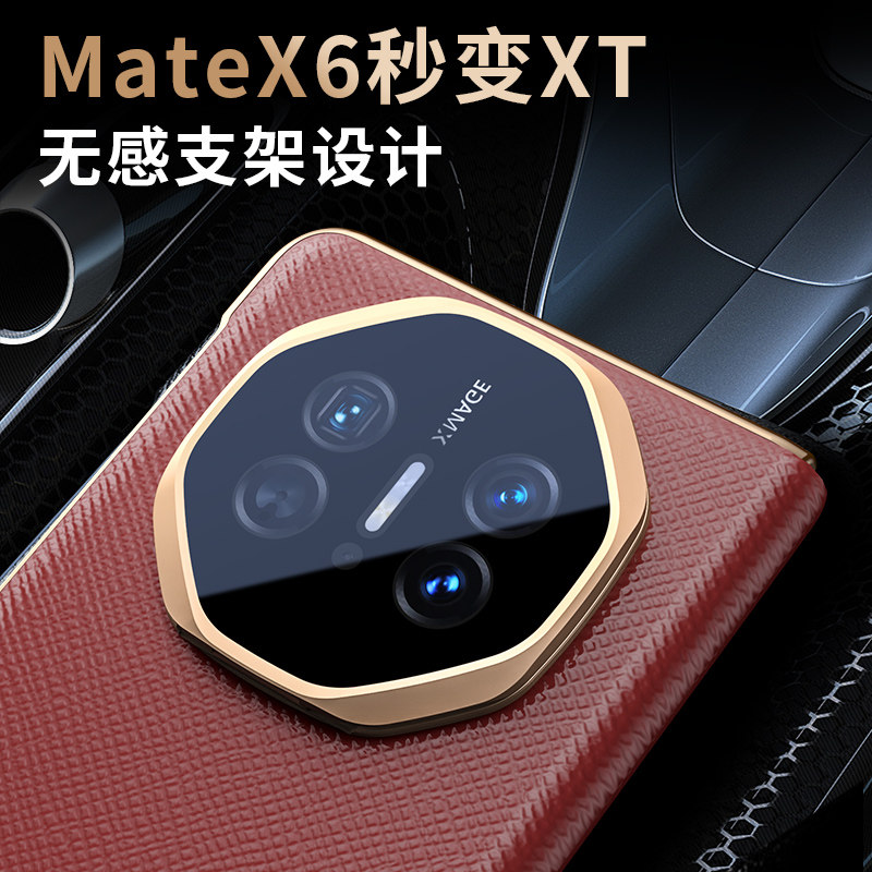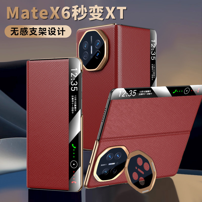 适用华为MateX6手机壳新款真皮matex5自带镜头膜全包防摔x3智能磁吸翻盖x6先锋版保护套男女超薄镜头隐形支架