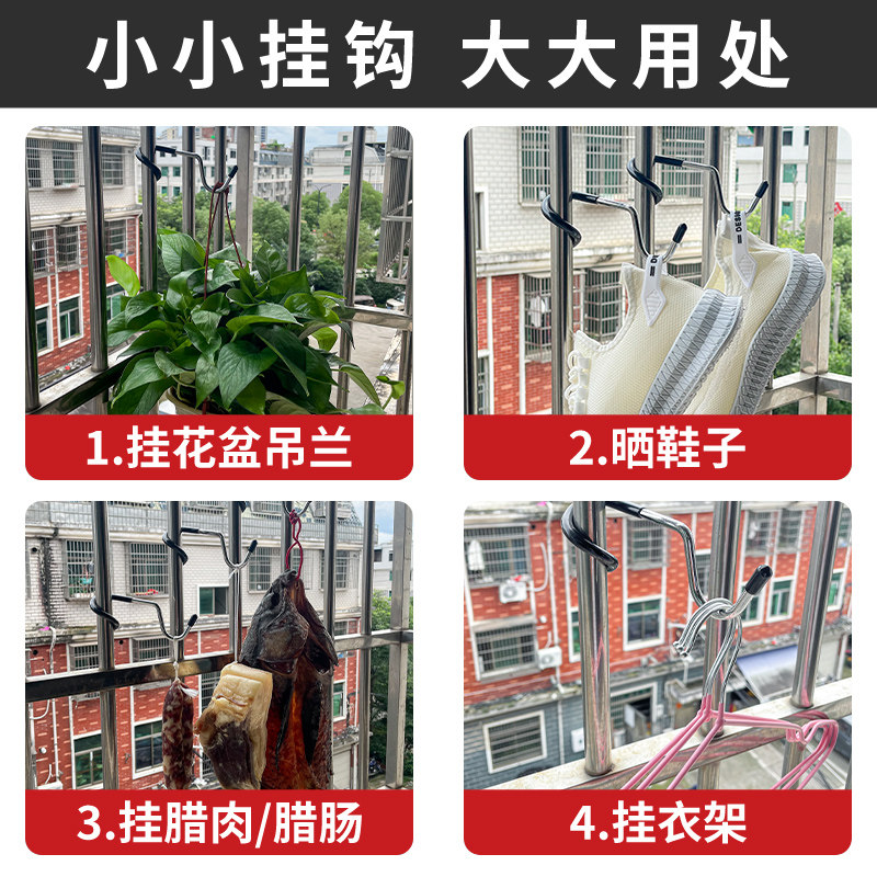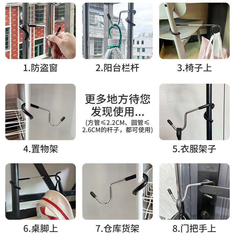 不锈钢猪尾巴挂钩免打孔阳台防盗窗宿舍床边挂衣钩户外天幕防滑钩
