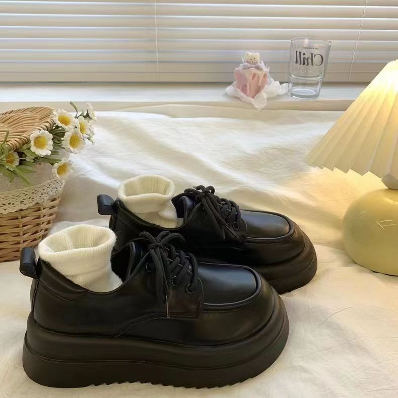 女童小皮鞋松糕厚底圆头皮鞋2025春秋新款白色英伦风复古大头单鞋