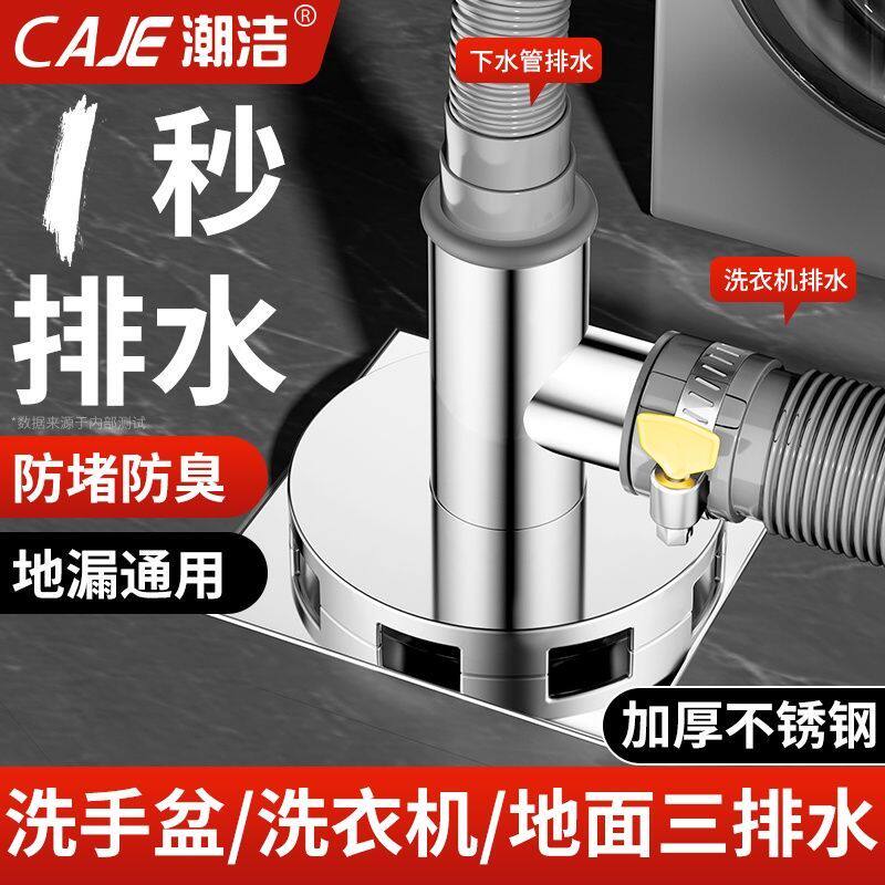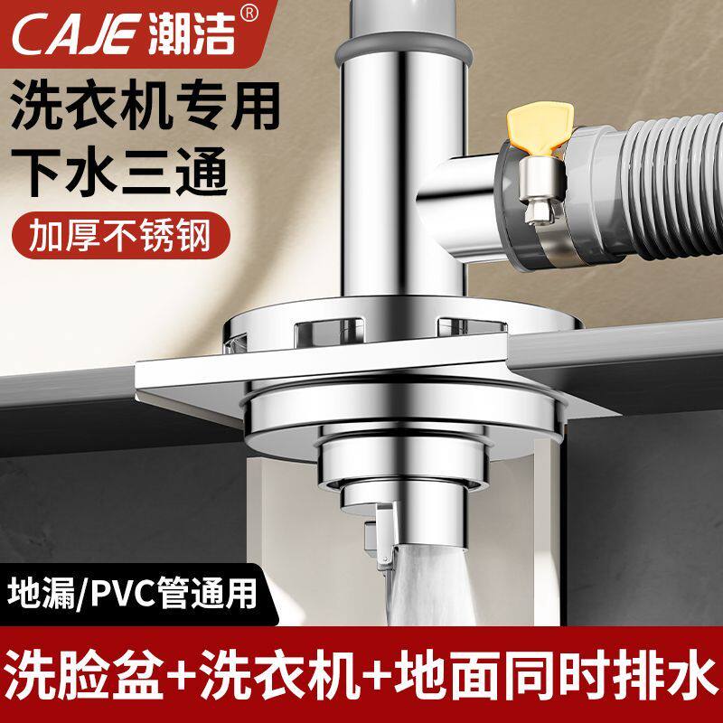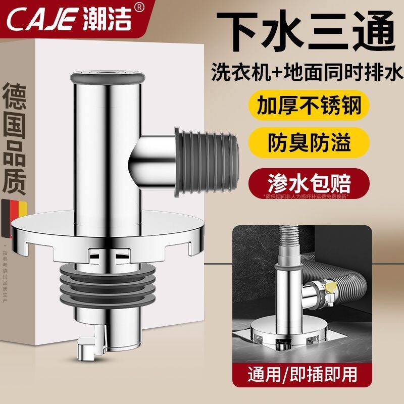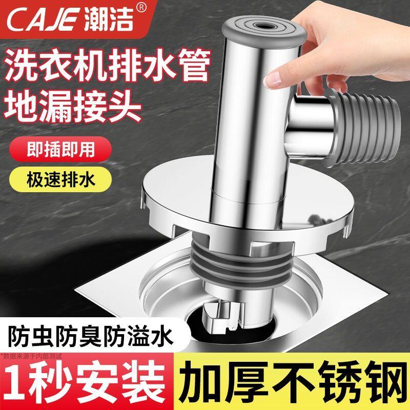 潮洁德国不锈钢地漏接头密封塞洗衣机专用防虫防臭下水三通接头