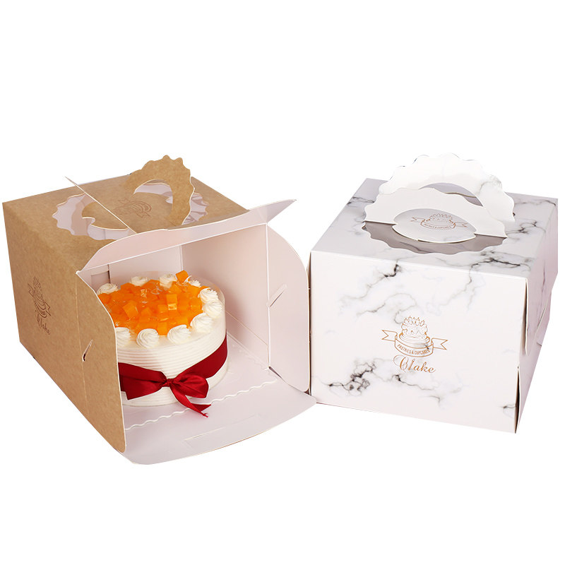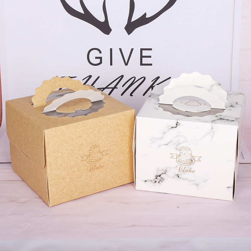 牛皮纸双层加高6 8 10 12寸手提生日蛋糕盒子六 八 十大理石包装