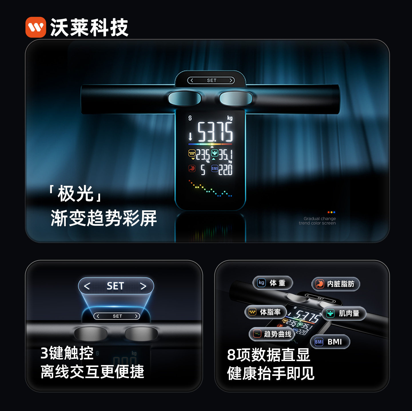 沃莱高端八电极体脂秤智能体重秤高精准度专业级健身房专用电子秤