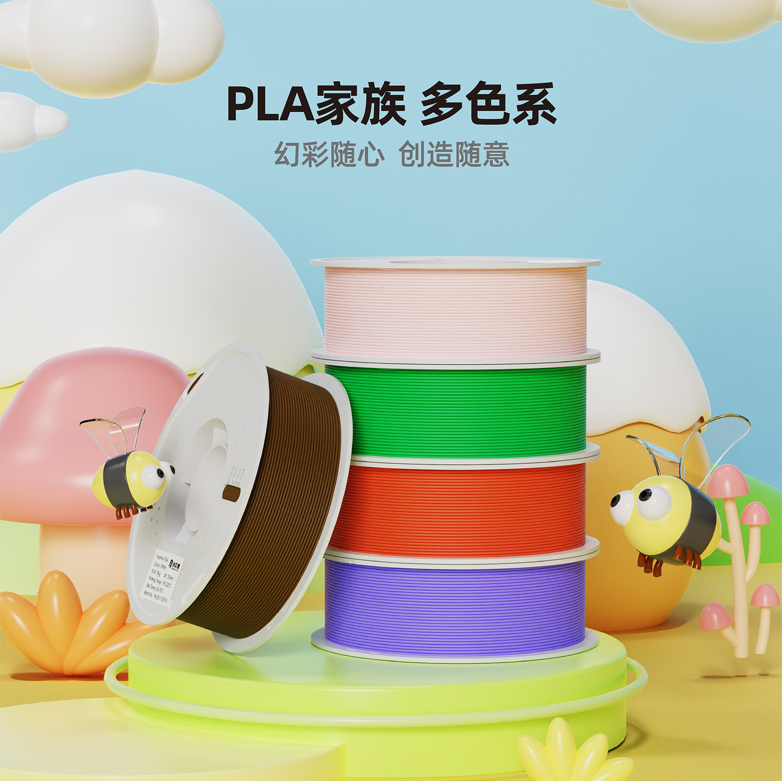 瑞贝思 3D打印耗材 易打印环保线材PLA Basic基础色FDM机高速材料1.75mm 适用于拓竹创想爱乐酷打印机