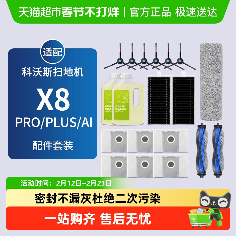 适配科沃斯扫地机器人配件X8 PRO PLUS清洁液剂边滚刷滤芯集尘袋