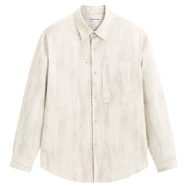 太平鸟男装 休闲衬衫2026春季新款肌理竖条时尚男士外穿式衬衫潮