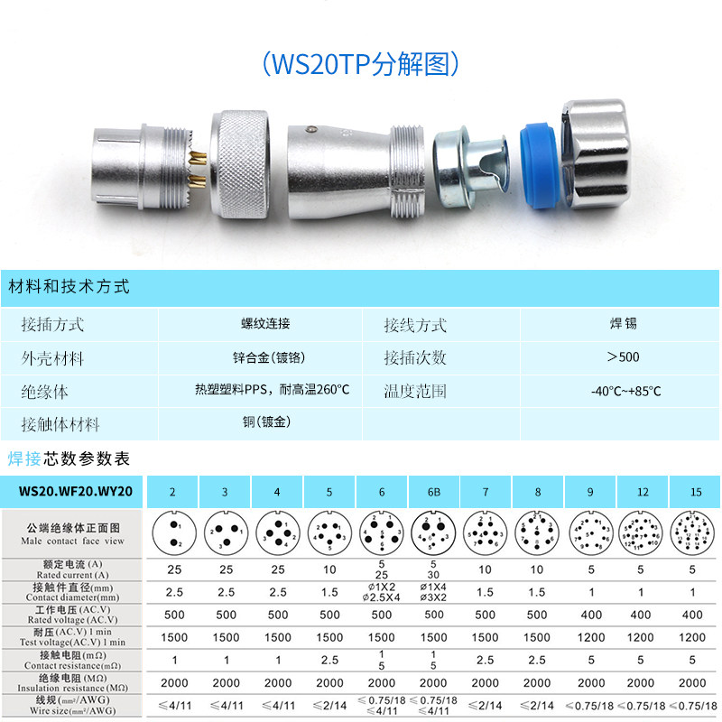 威浦 航空插头 WS20-2芯3芯4芯5芯7芯9芯12芯 TP/TQ/TD