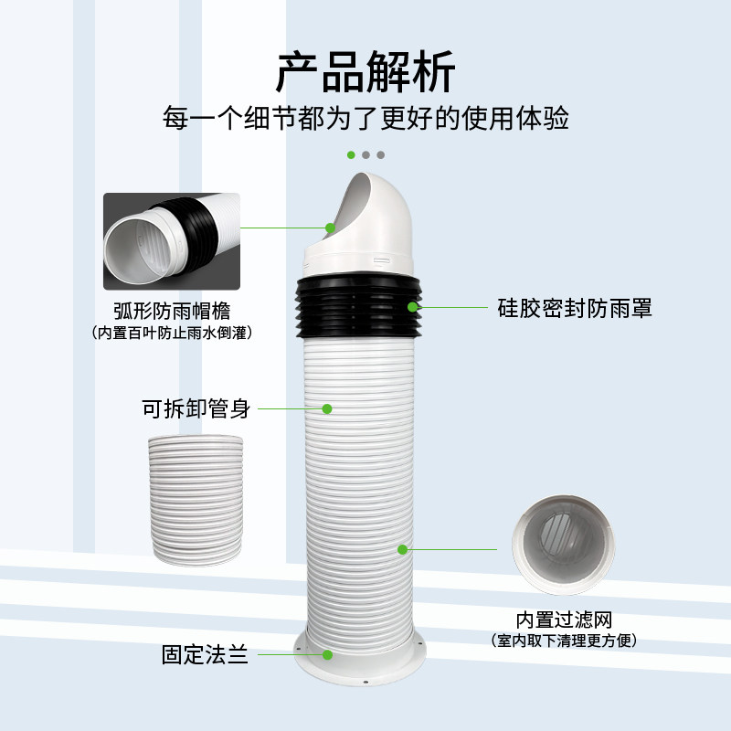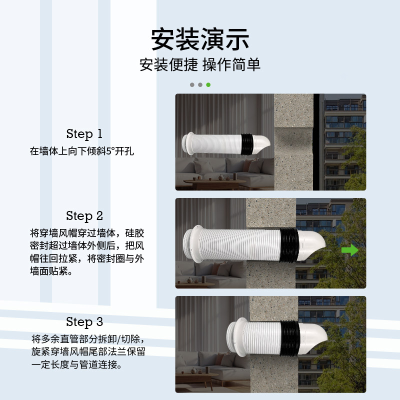新风系统一体式加长穿墙风帽外墙室内外安装风帽防雨帽进排出风口