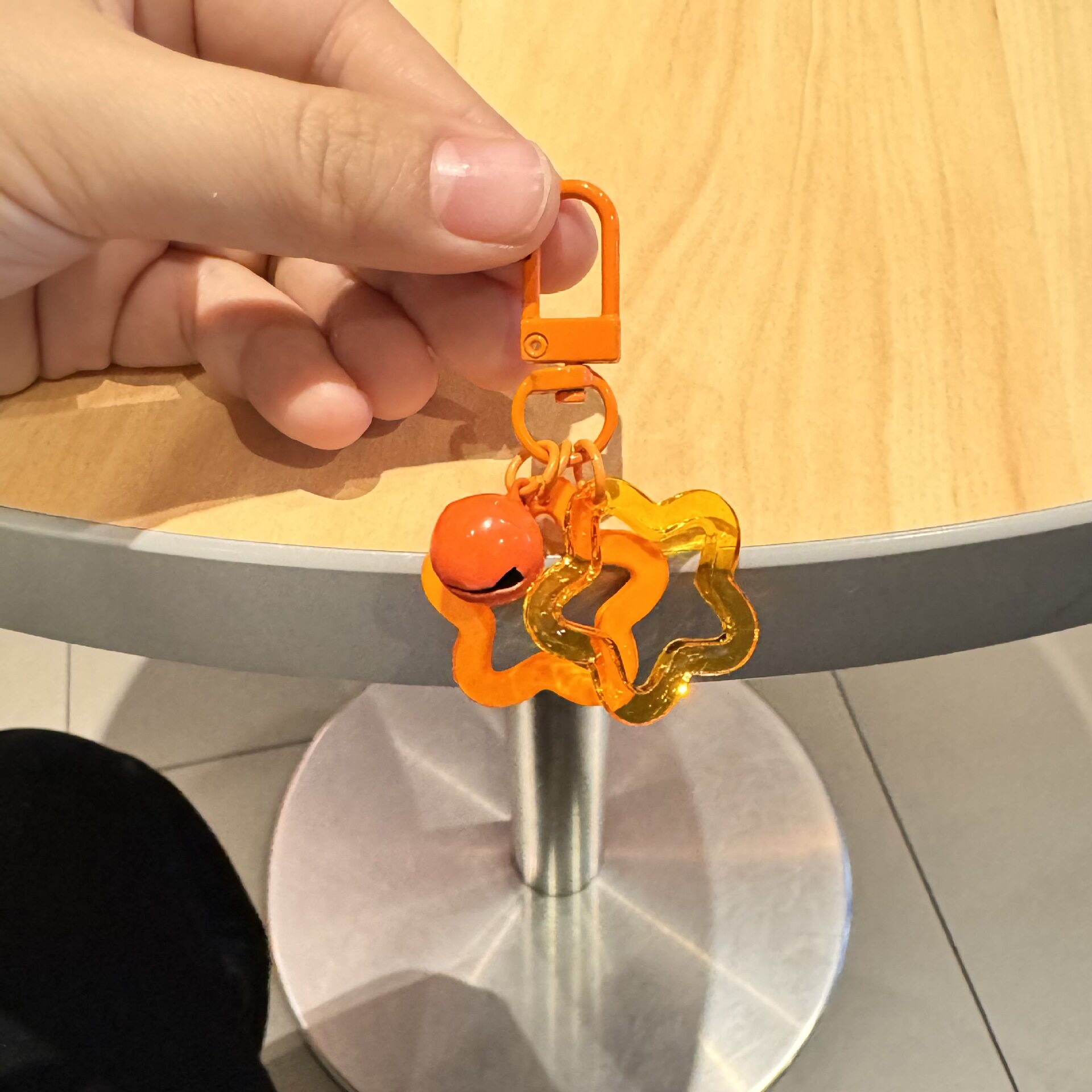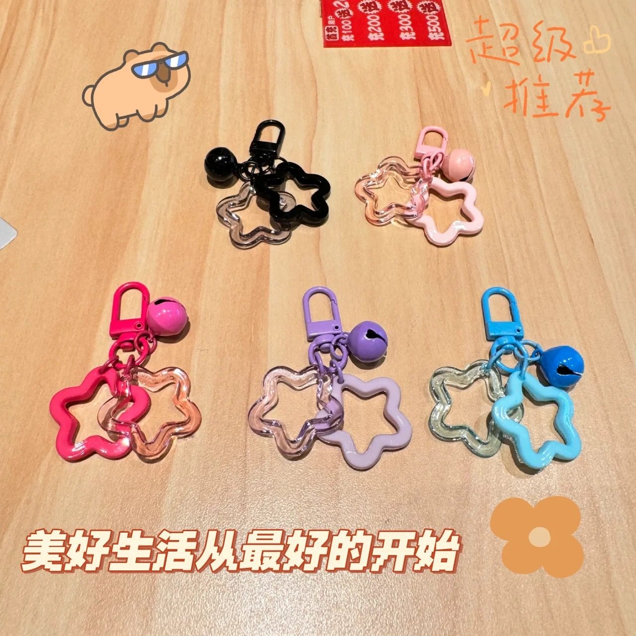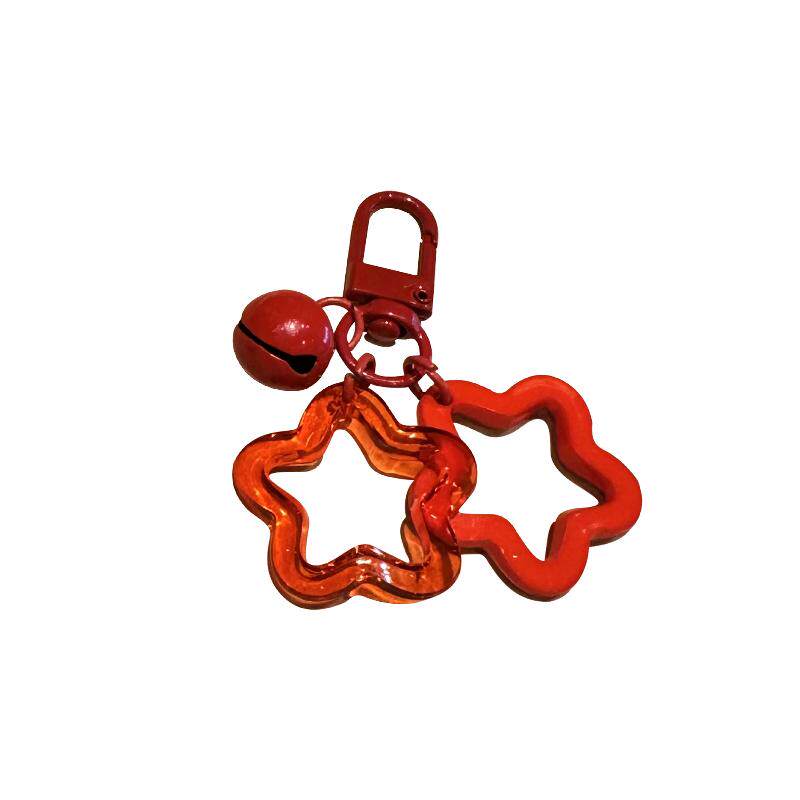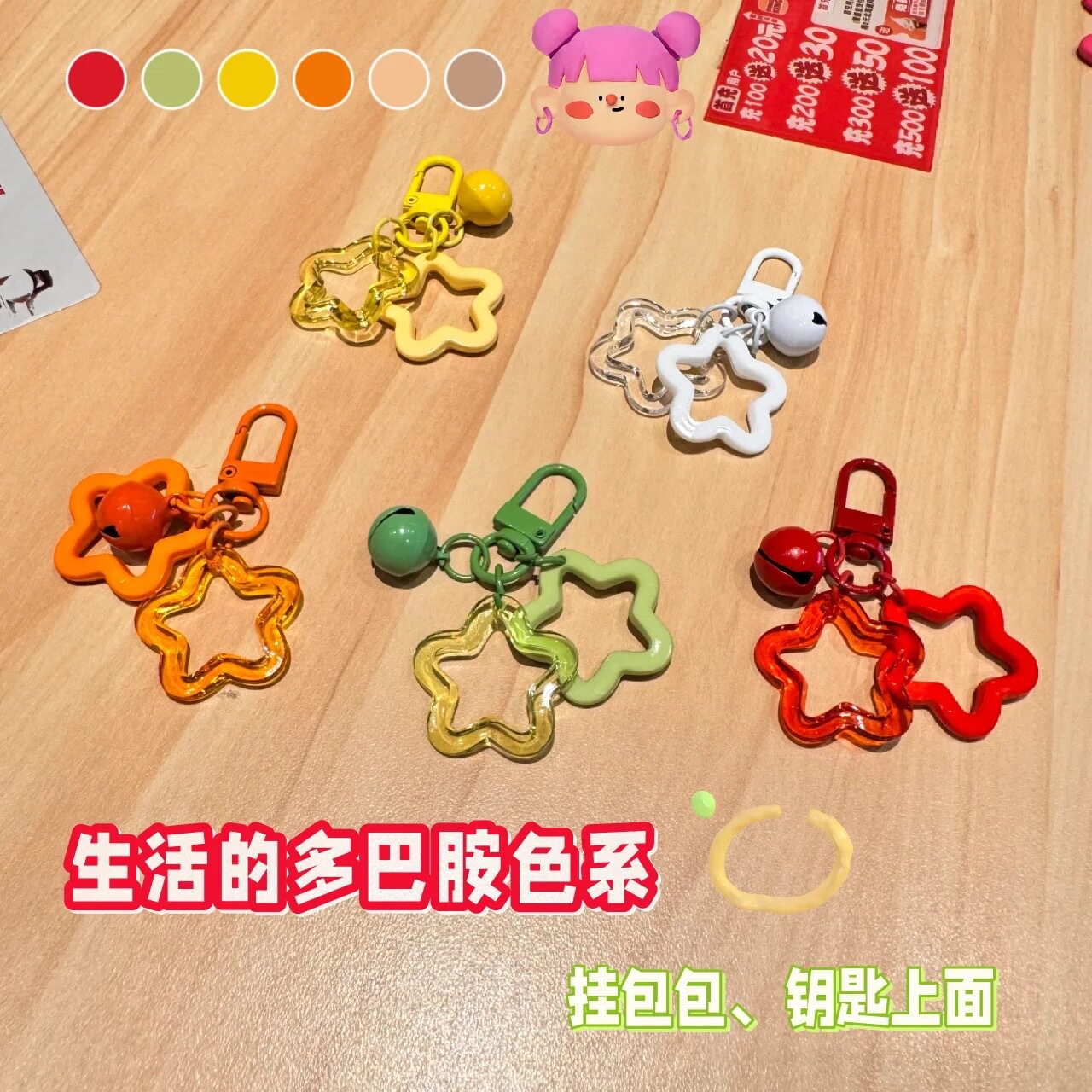 ins彩色亚克力镂空五角星钥匙扣挂件烤漆铃铛配件耳机套包包装饰
