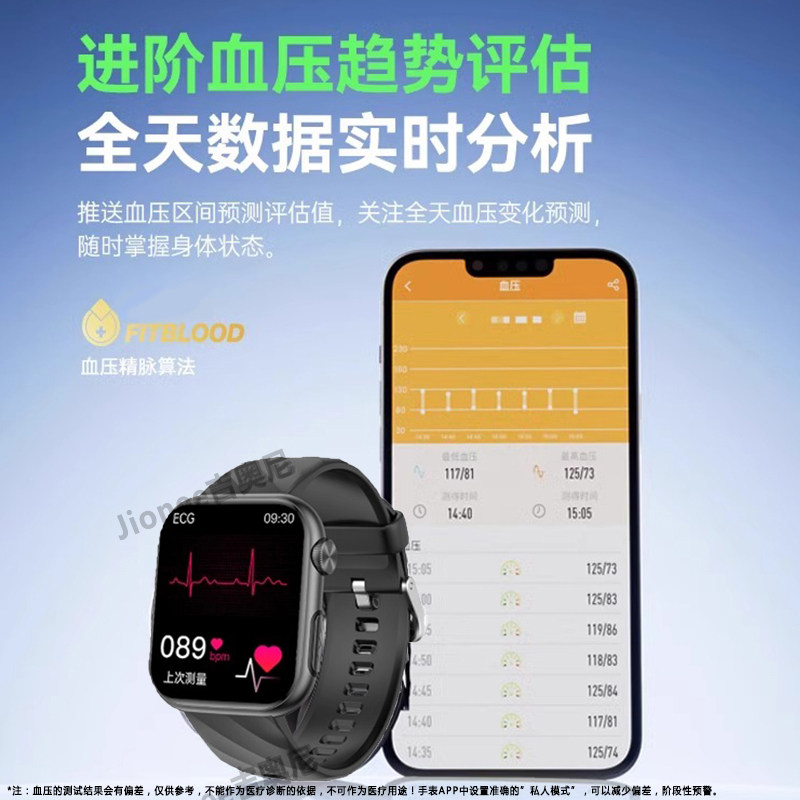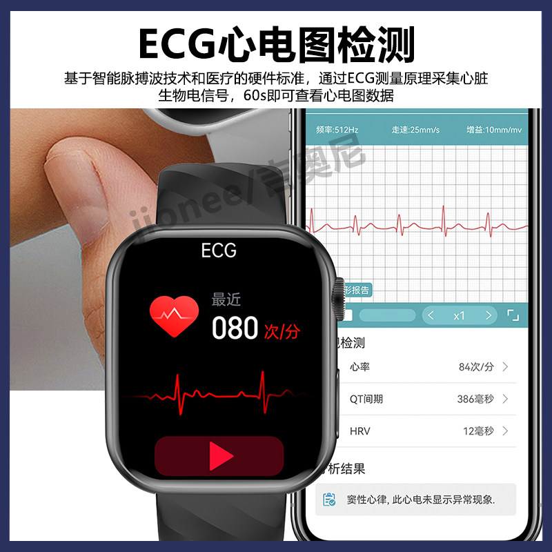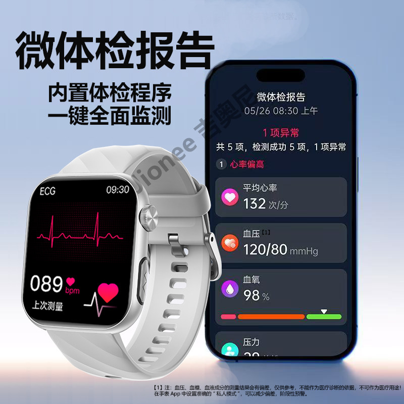 【医疗级】吉奥尼Jionee健康监测智能手表心率ECG心电图血氧24小时血压血糖趋势评估体温睡眠运动手环测量H10