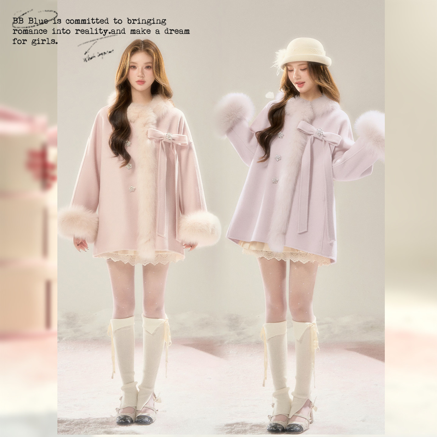 BB BLUE/雪国千金/25新定染色100%全羊毛真狐狸毛超好看毛呢外套