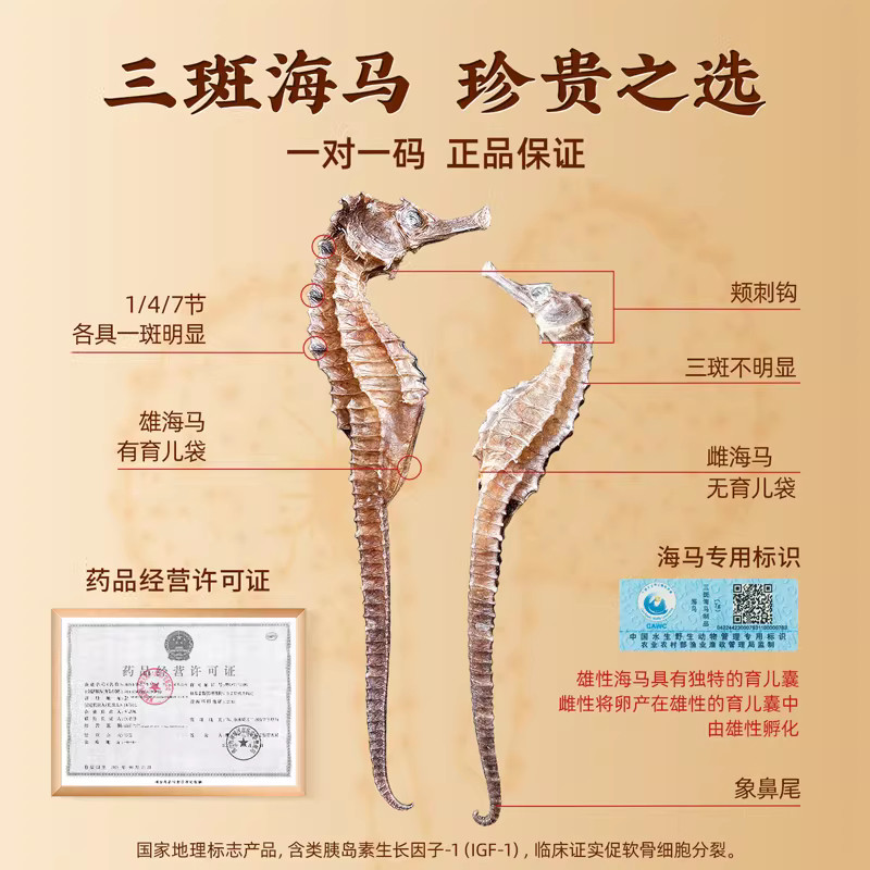 三斑海马中药材干货一公一母配对男士滋补养生煲汤海龙泡酒足重CN