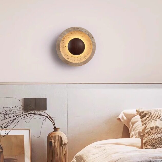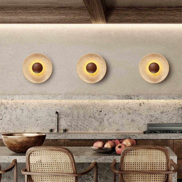 中古侘寂风餐厅民宿黄洞石圆形壁灯复古卧室床头过道楼梯氛围灯具