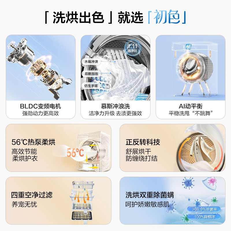 焕新补贴]海尔洗烘套装超薄滚筒大容量热泵烘干全自动家用旗舰27E