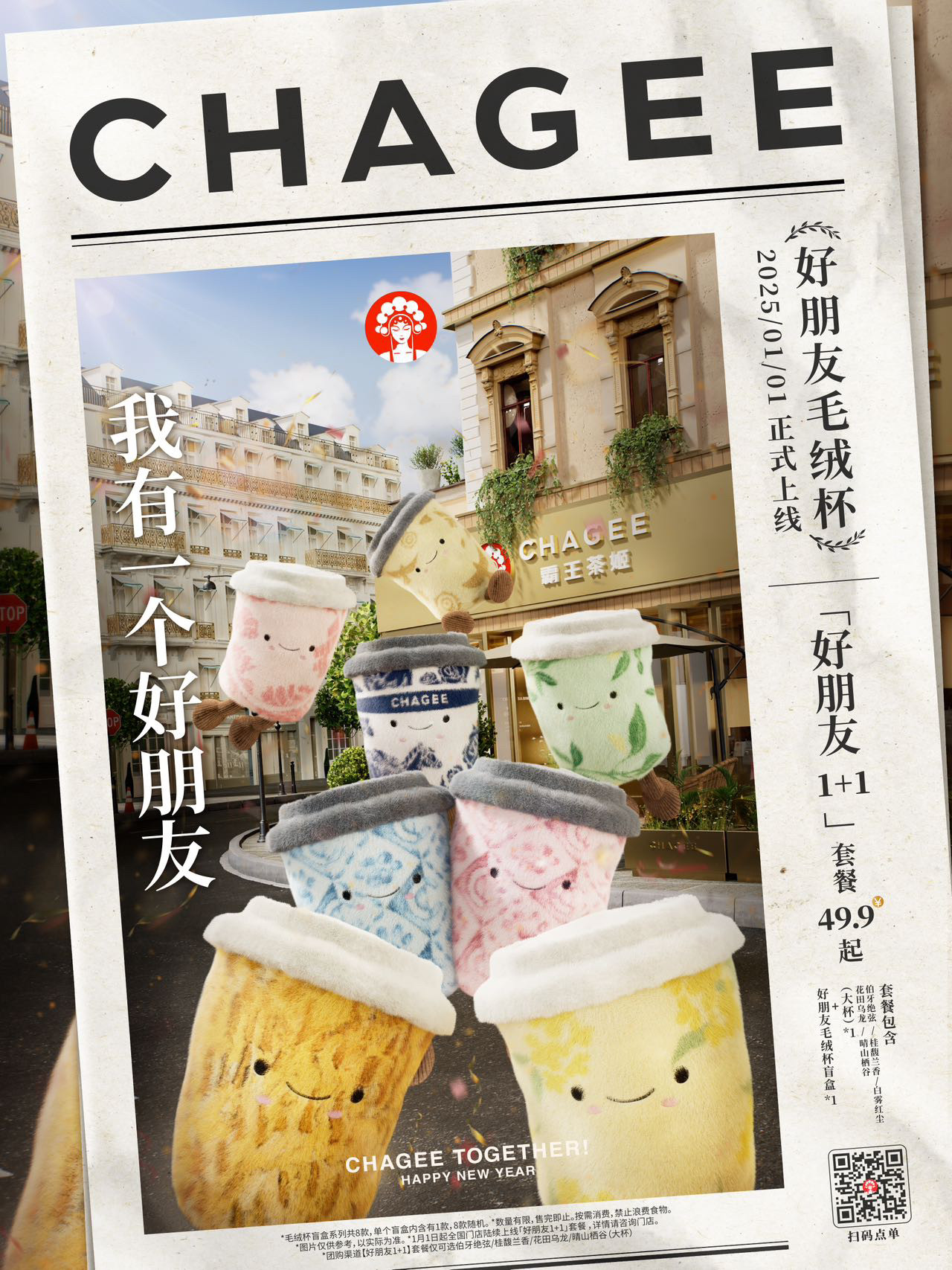 霸王茶姬好朋友一直在一起毛绒杯毛绒玩具正品周边现货秒发