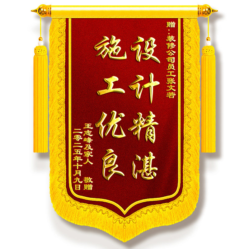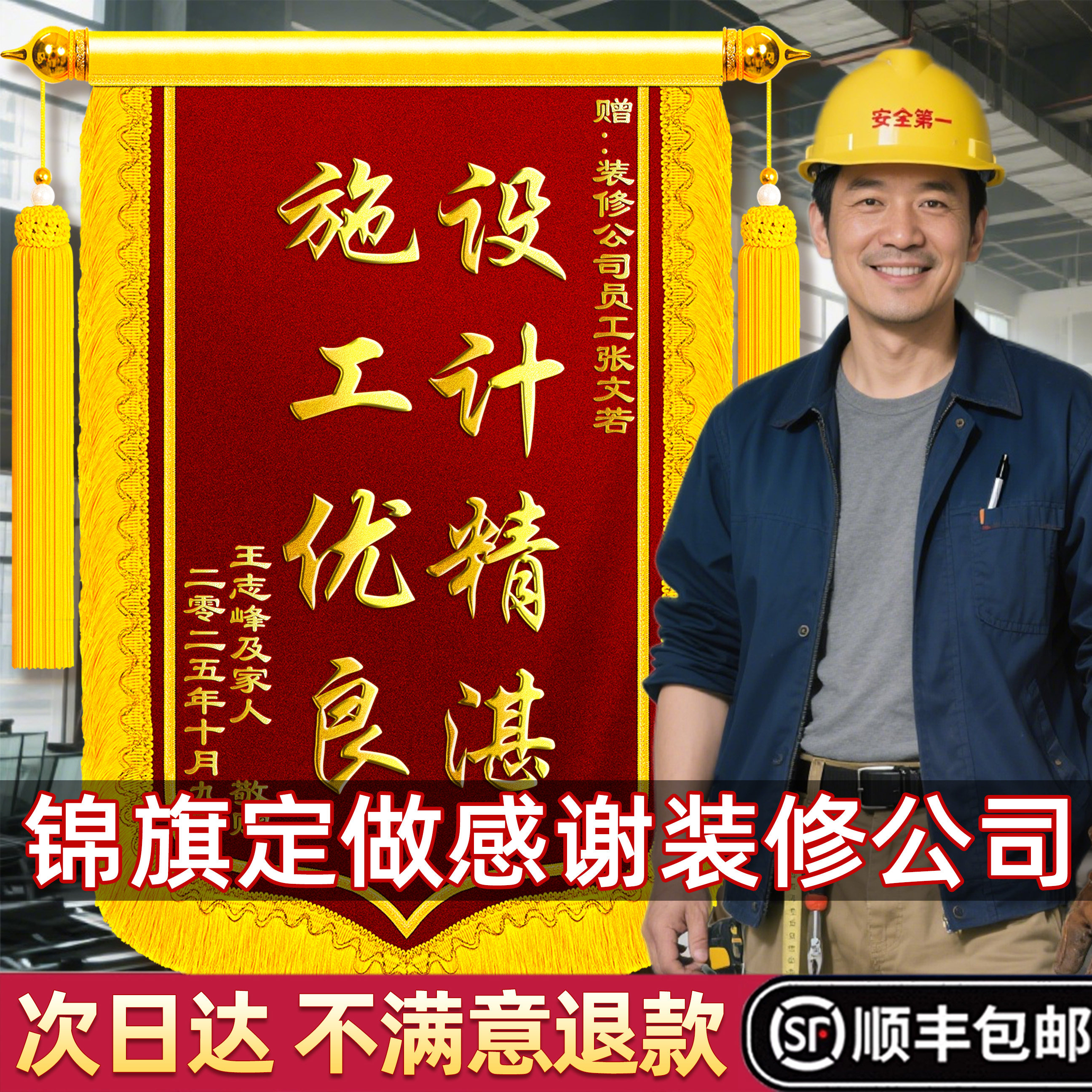 锦旗定制感谢装修公司定做送设计师监理服务工程师工长项目经理施工师傅展示工地形象精湛优良施工专业旌旗
