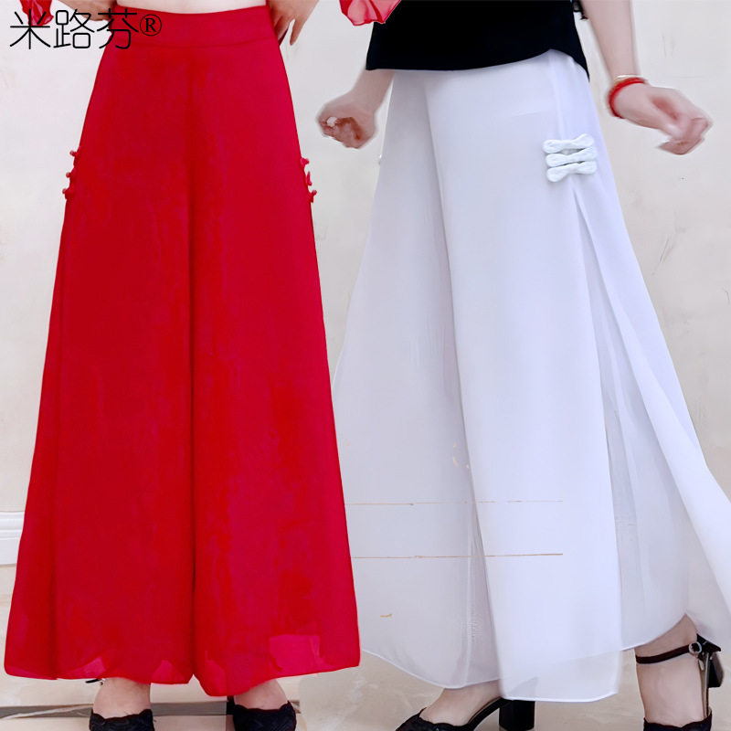 百搭广场舞裤高腰裙裤阔腿裤春夏垂感古典舞飘逸跳舞雪纺休闲