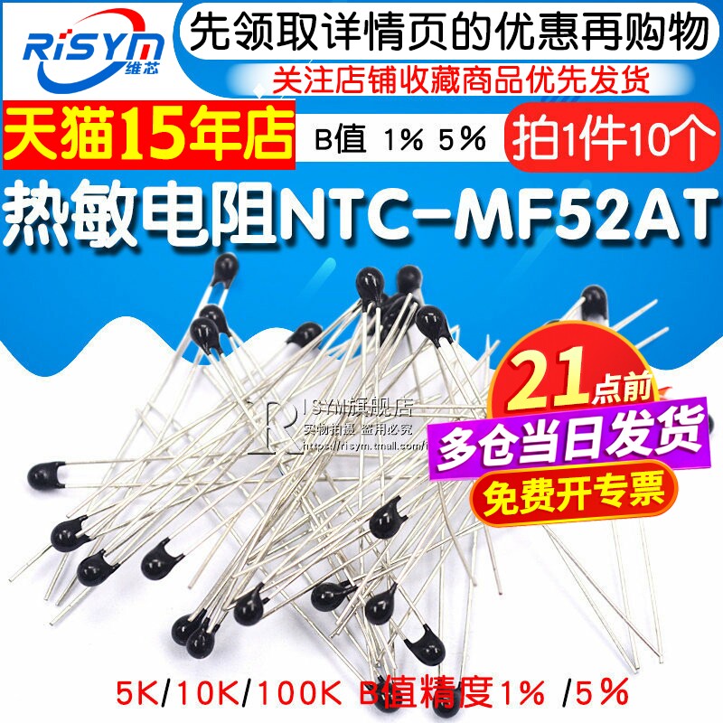 热敏电阻NTC-MF52AT MF52-10kJ 5K 100K B值精度1% 5%3435 3950