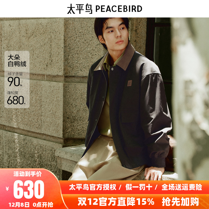 太平鸟男装 夹克羽绒服男2025年冬季新款巴恩风翻领保暖防寒服潮
