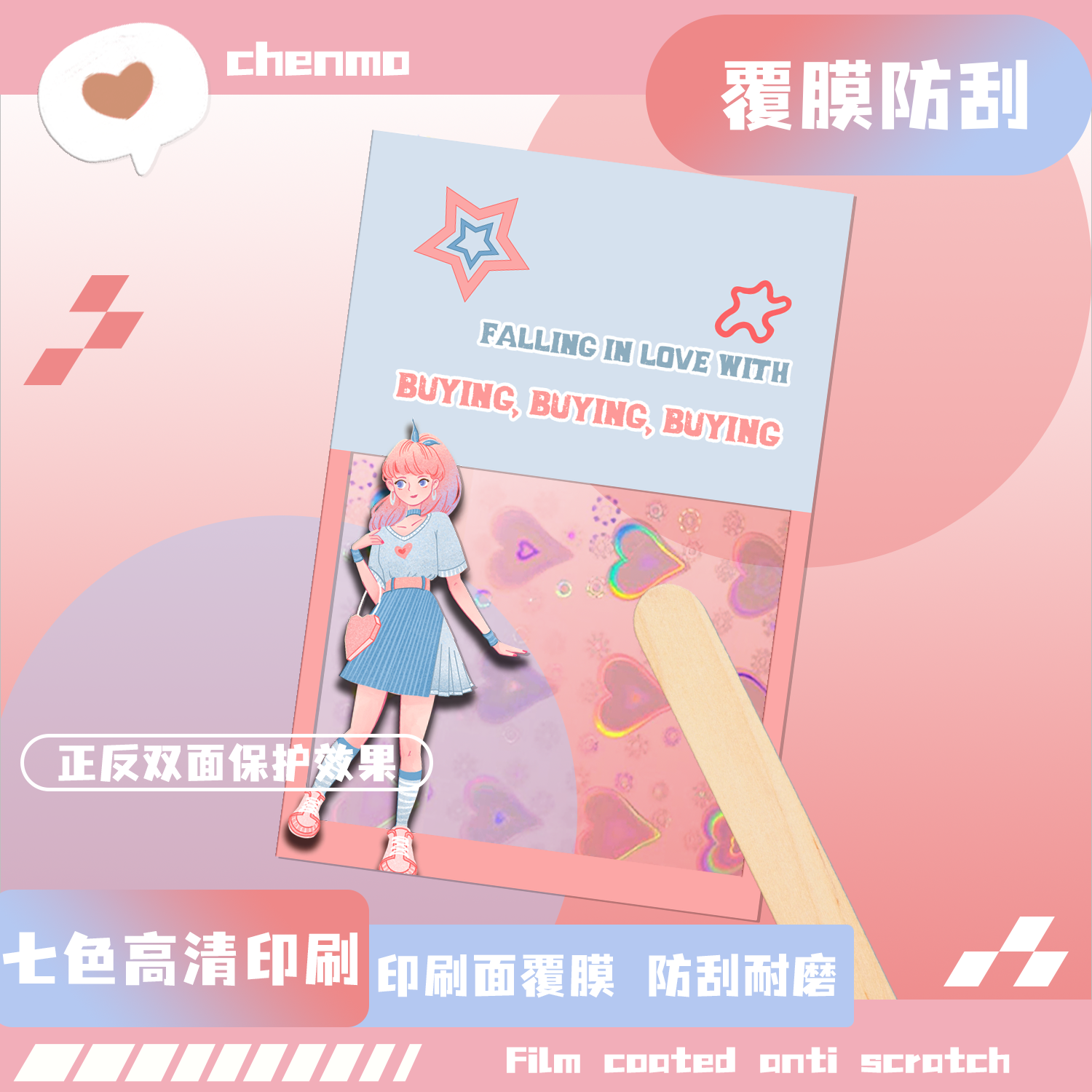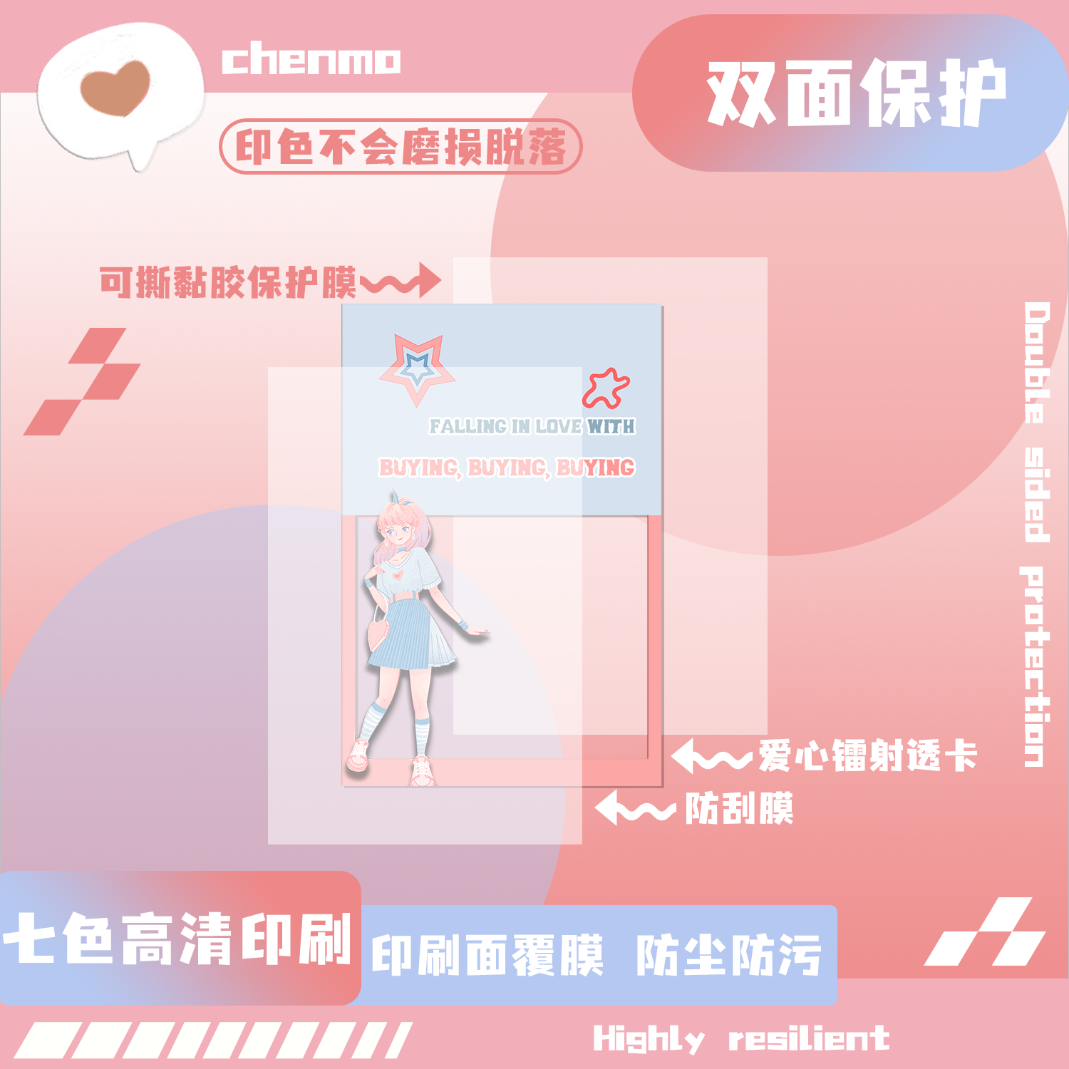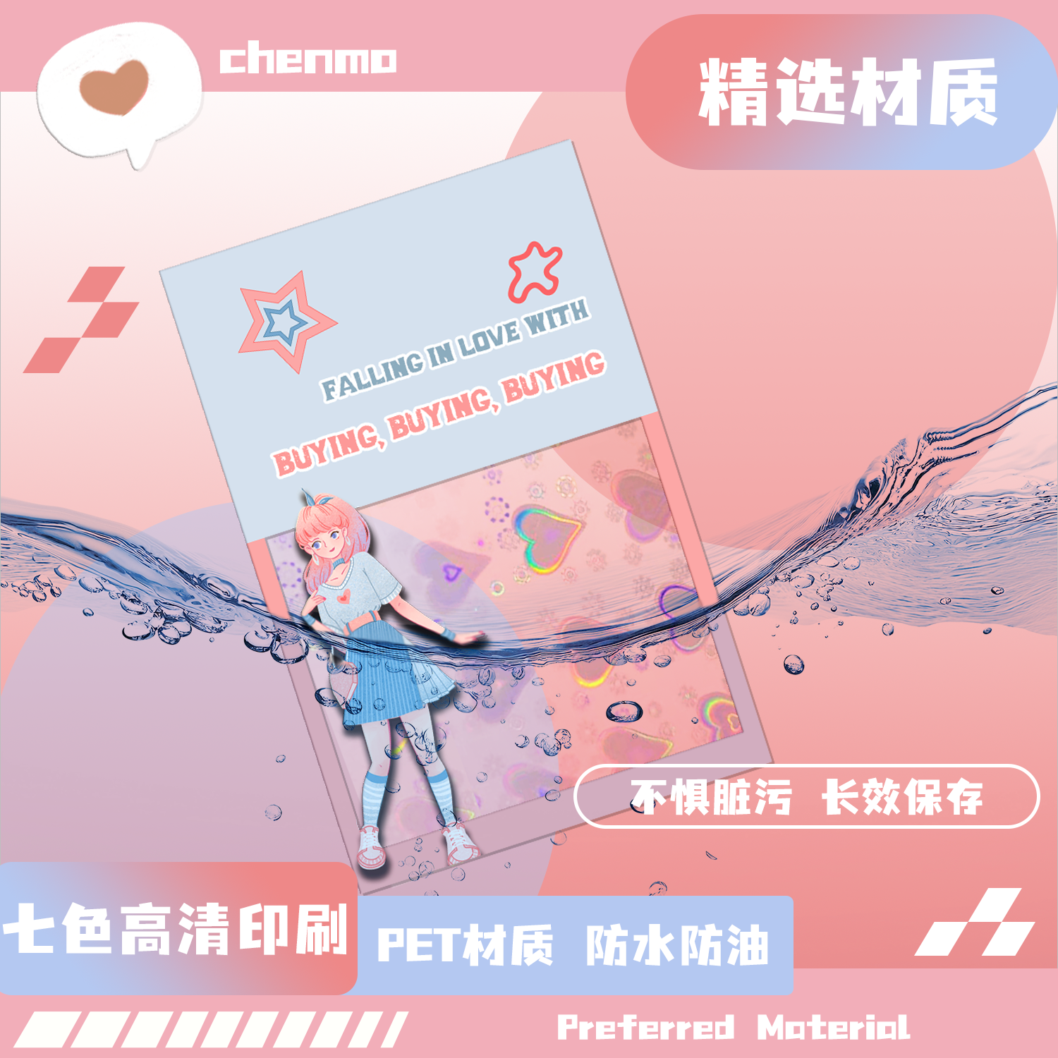 沉墨爱心镭射透卡来图定制PET胶片自印自制亚克力PVC异形ins明信片歌词书签小卡拍立得光影加急名片印刷打印