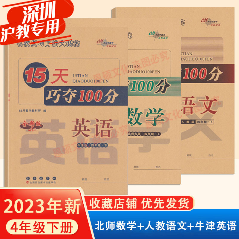 深圳专版15天巧夺100分四年级下册测试卷全套人教语文北师大数学牛津沪教版英语小学生专项突破训练期末复习同步练习册单元检测卷