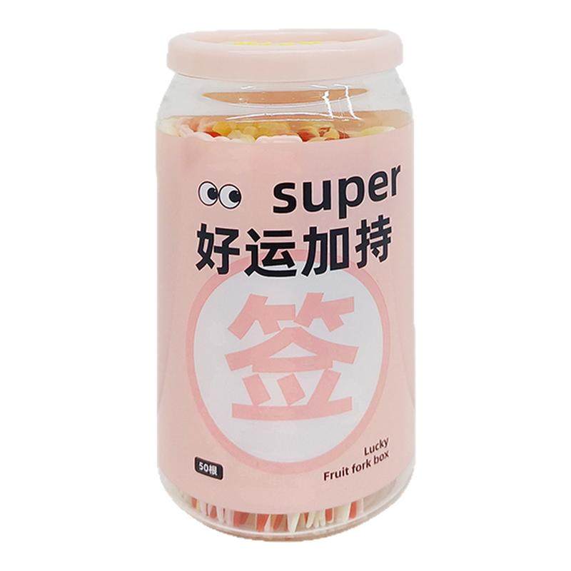 onlycook一次性幸运签水果叉罐装家用食品级吃蛋糕甜品塑料小叉子