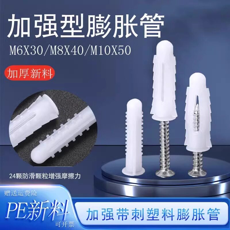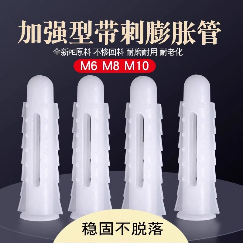 加厚带刺塑料膨胀管塑料膨胀螺丝白色加长封口膨胀管M6/M8/6MM