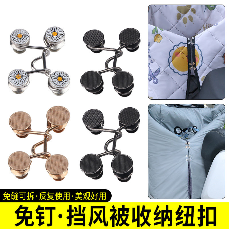 电动车挡风被固定器收纳扣子防风罩整理神器免缝可调节可拆卸挂扣