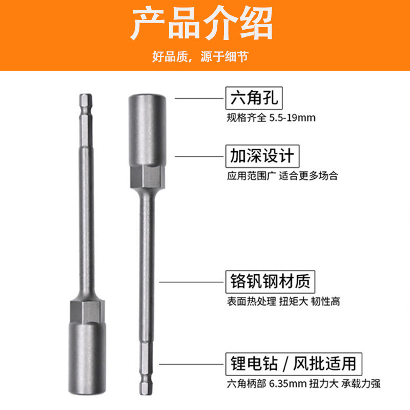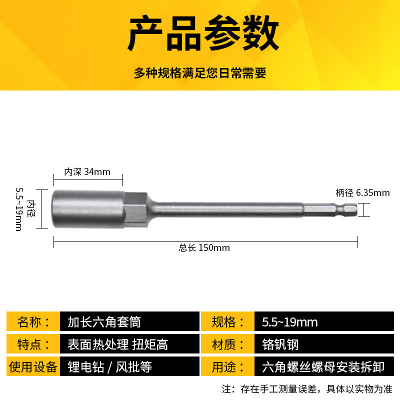 150mm加长加深风批套筒内外六角加深电动螺母套头手电钻套筒头套