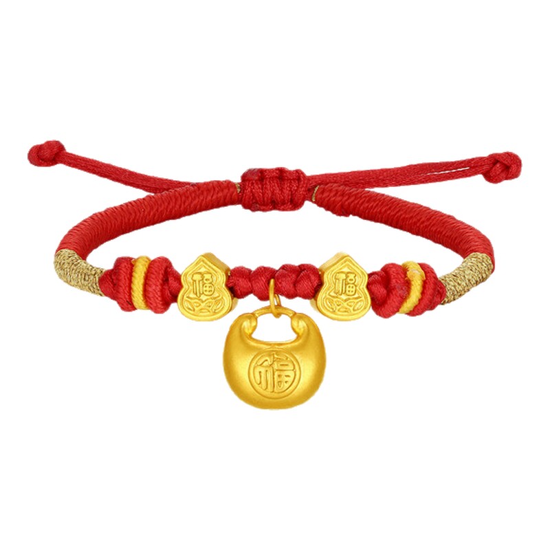 潮宏基宝护小胖福黄金手链足金手绳红绳5D硬金显大葫芦宝宝满月礼